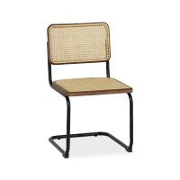 Deze stijlvolle GUSTAV sledestoel brengt een vleugje retro charme in een modern jasje naar je interieur. Met een warme bruine structuur en zwart metalen sledeframe heeft deze stoel een unieke uitstraling. De zitting en rugleuning van natuurlijke webbing zorgen voor een lichte, luchtige look en een aangenaam zitcomfort. Het slanke, zwarte frame geeft de stoel een subtiele industriële touch. De Gustav stoel is een tijdloze keuze voor wie houdt van karaktervolle meubels met een iconisch design.