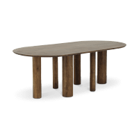 De PILAR eettafel combineert kracht en elegantie in een tijdloos design. Vervaardigd uit hoogwaardig donker mangohout, straalt deze tafel warmte en karakter uit, terwijl de afgeronde vormen en massieve cilindrische poten zorgen voor een speels en modern accent.