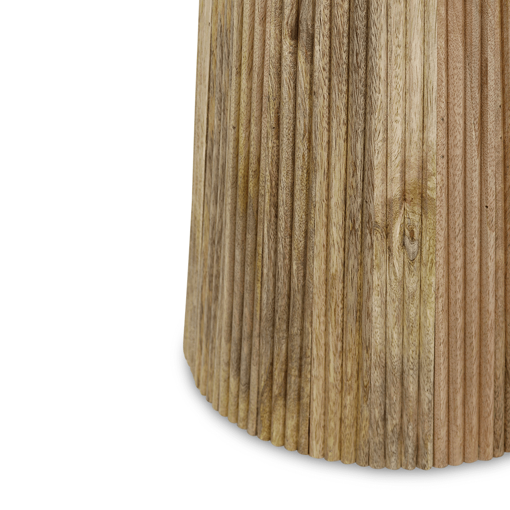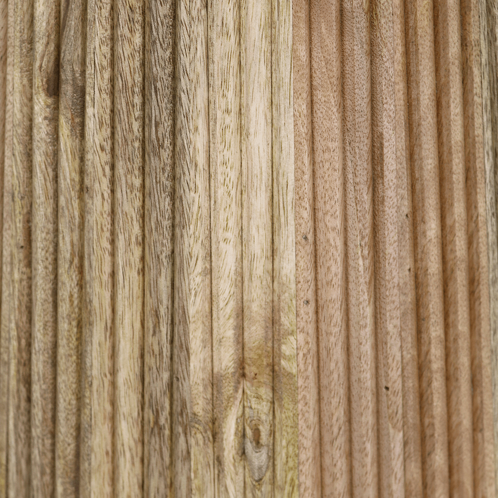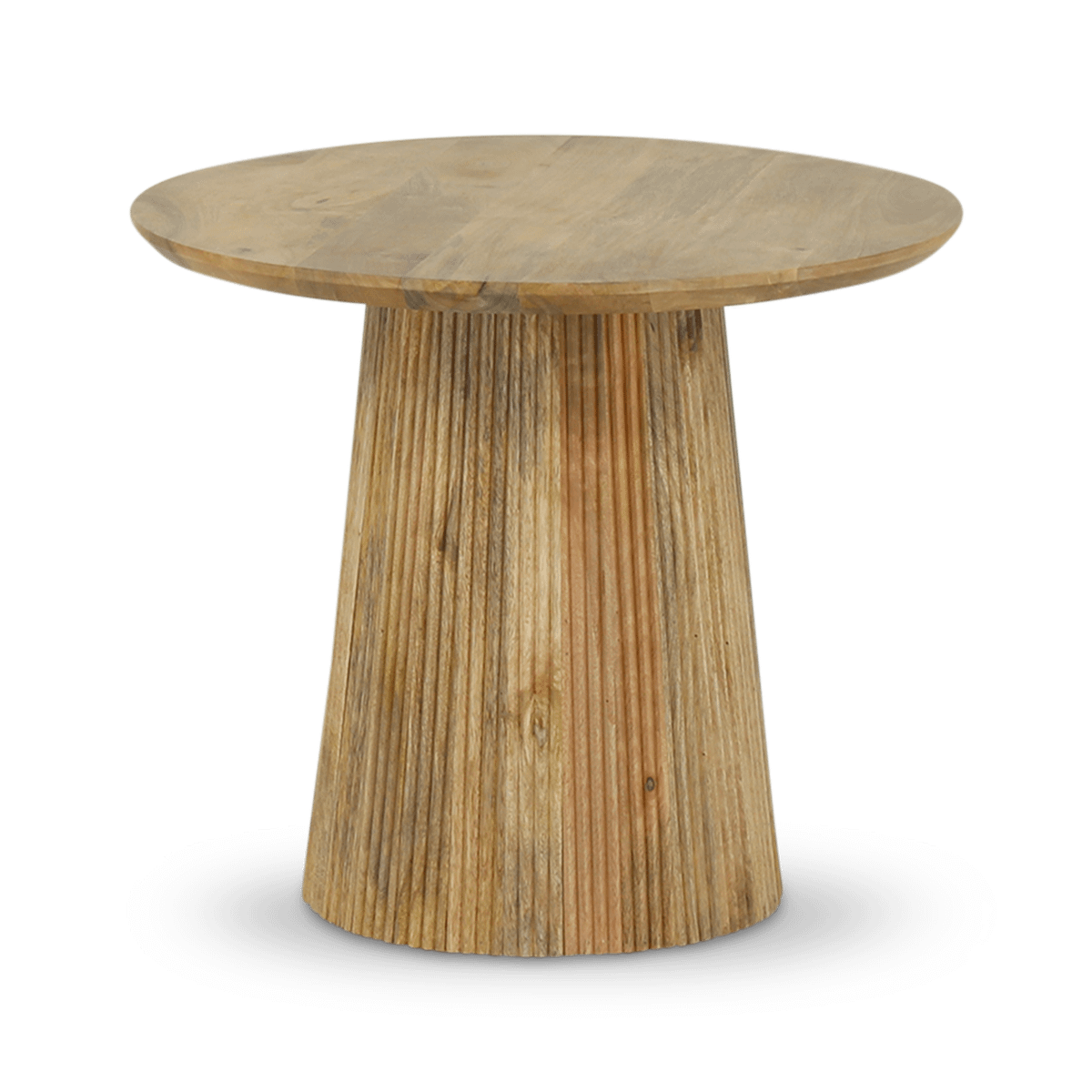 De SUNDAR bijzettafel is een elegant en onderscheidend meubelstuk dat warmte en stijl toevoegt aan elke ruimte. Met zijn verfijnde ronde blad en een subtiel geribbelde voet, gemaakt van natural mangohout, straalt dit tafeltje karakter en vakmanschap uit. De rijke afwerking benadrukt het natuurlijke houtpatroon en voegt een vleugje luxe toe aan jouw interieur.