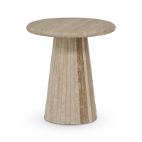 De ECHO Salontafel straalt pure elegantie uit met zijn luxueuze travertin afwerking en verfijnde details. Met een diameter van 50cm is dit compacte designstuk perfect als eyecatcher in de woonkamer of als stijlvolle bijzettafel. De conische poot voegt een speels reliëf toe en benadrukt de natuurlijke schoonheid van het steen. Dankzij de tijdloze uitstraling past de ECHO moeiteloos in zowel moderne als klassieke interieurs. Een subtiele, maar karaktervolle toevoeging aan elk interieur!