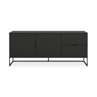 Ontdek LIPP, een prachtige, hedendaagse meubellijn, geïnspireerd op alles wat Scandinavisch design groot maakt. Simpele, heldere lijnen, warme, zachte tinten en een eenvoud waar je meteen voor valt. Zijn subtiel weggewerkte handvaten en elegant mat zwarte metalen frame zorgen voor een mooie symmetrie dat elk meubel naadloos met elkaar verbindt. Dit TV-meubel is afgewerkt in een mooie mat zwarte poederlak, een hint naar het kleurenpalet van het Scandinavische boslandschap. Het meubel heeft 2 deuren en 2 lades en heeft een breedte van 177cm, een hoogte van 76cm en een diepte van 43cm.