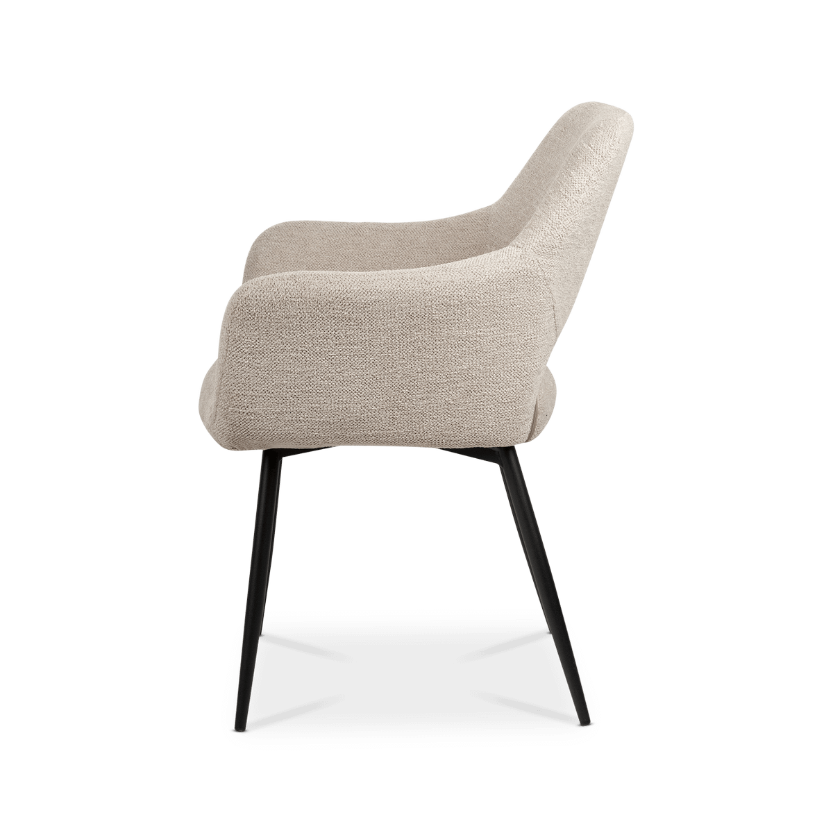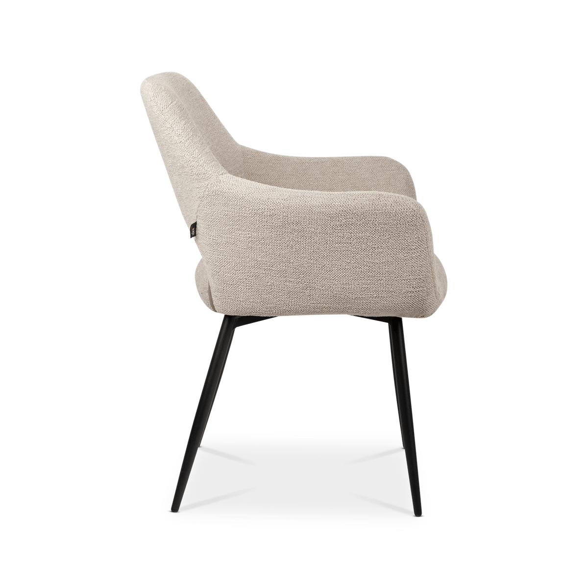 Ontdek de perfecte aanvulling op jouw moderne leefruimte met onze Armstoel PELE. Met zijn verfijnde ontwerp en tijdloze vormgeving voegt deze stoel een vleugje eigentijdse stijl toe aan elke kamer. De prachtige geweven zandkleurige stof straalt niet alleen elegantie uit, maar biedt ook duurzaamheid, ideaal voor jonge koppels of gezinnen met kleine kinderen.
