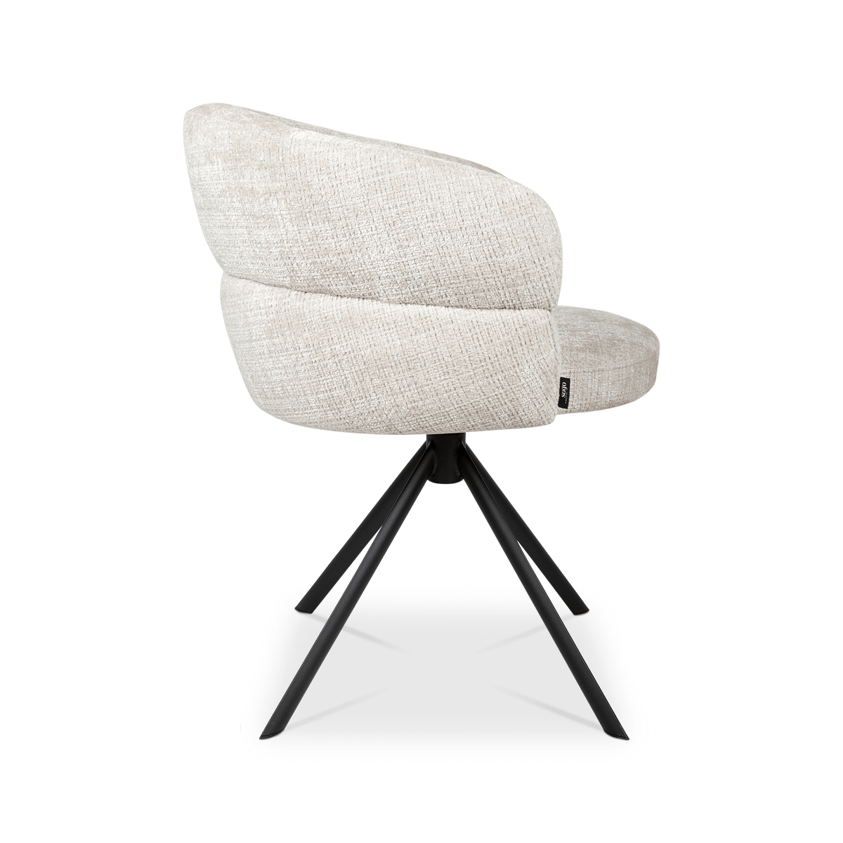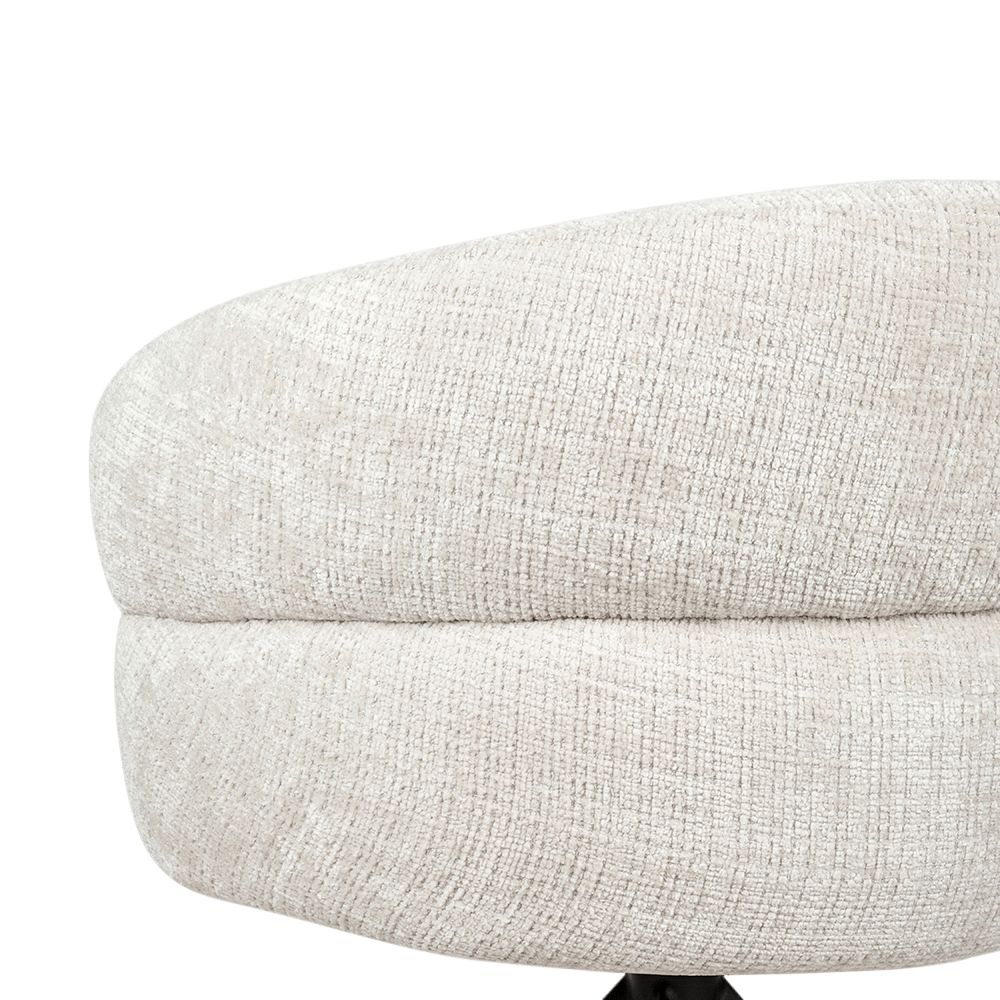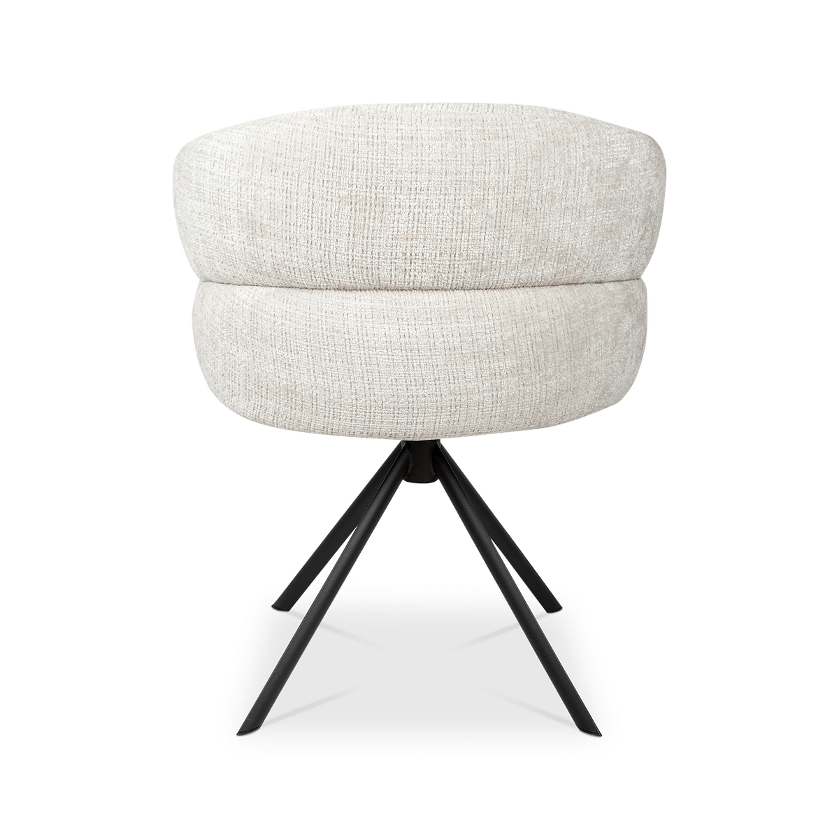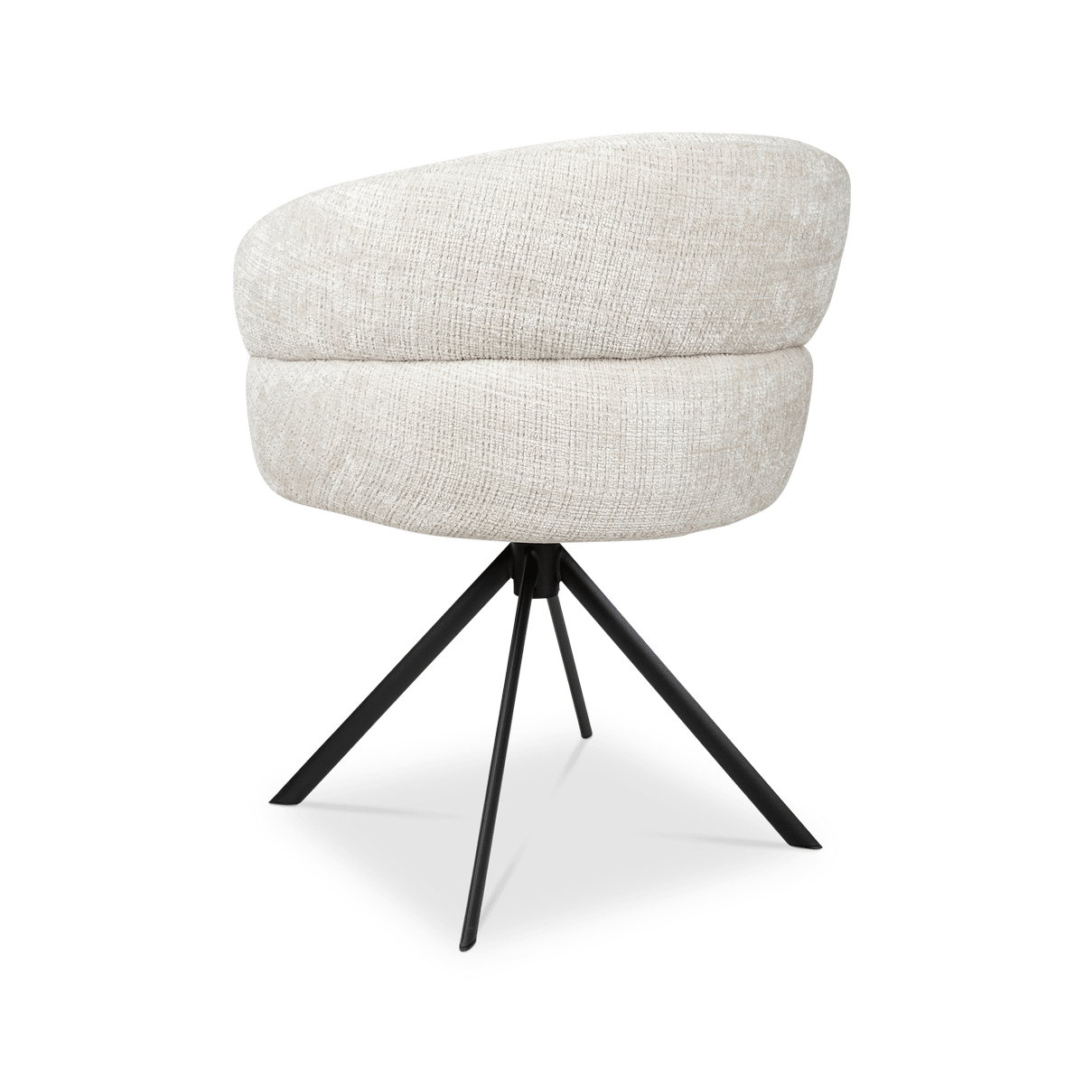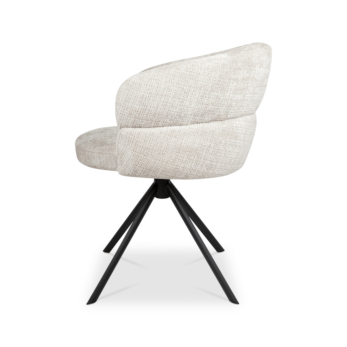 Dankzij het 360° draaimechanisme biedt de KALEVI optimale bewegingsvrijheid, terwijl de zwarte metalen poten zorgen voor een moderne, stabiele basis. Een stijlvolle mix van design en comfort die moeiteloos in elk interieur past.