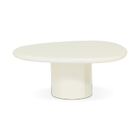 Eettafel VRITTA trekt de aandacht met haar organische vormgeving en sculpturale uitstraling in wit microcement. Het asymmetrische blad en de robuuste, cilindervormige poot creëren samen een harmonieus spel van lijnen en volumes. Deze tafel is een toonbeeld van eigentijdse esthetiek en vormt het perfecte middelpunt voor intieme diners of stijlvolle gesprekken. Minimalistisch, maar met karakter – VRITTA voegt rust en verfijning toe aan elke ruimte!