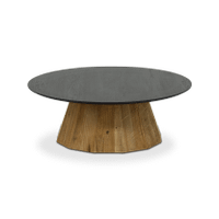 Ontdek de verfijnde eenvoud van de LARISA salontafel. Met een karakteristieke conische poot van gerecycled dennenhout en een diepzwart gebeitst tafelblad, voegt deze tafel moeiteloos stijl toe aan elke woonruimte. Met een diameter van 90 cm en een hoogte van 33 cm biedt de Larisa salontafel een perfecte balans tussen functionaliteit en design. Laat je betoveren door de elegante samensmelting van natuurlijke en moderne elementen, en verrijk je woonkamer met een tijdloze blikvanger die bij elke inrichting past. Geef je ruimte een vleugje ingetogen luxe met de Larisa salontafel - een ode aan sublieme ambachtelijkheid.
