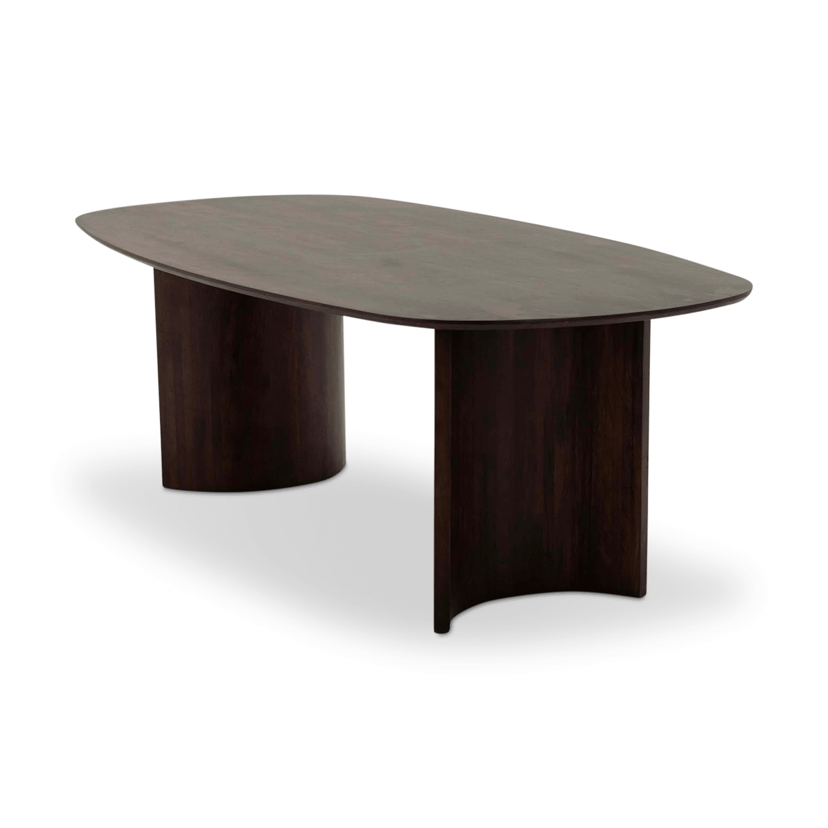 De CHANDRA Eettafel heeft een Deens ovaal tafelblad van donkerbruin mangohout en stevige, halfronde poten. De combinatie van het warme hout en de strakke vormgeving geeft de tafel een moderne, maar tijdloze uitstraling. Met haar afmetingen van 230 x 120 cm biedt CHANDRA voldoende plaats voor zes tot acht personen. Een stijlvolle en praktische tafel die past in elk eigentijds interieur.