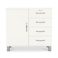 The Rebel. Meet MALIBU. Geïnspireerd door de jaren '50 en '60 waarin jongeren via muziek, mode en kunst naar manieren zochten om zich af te zetten tegen gevestigde waarden, viert Malibu de Rock 'n Roll spirit waarin vrijheid en persoonlijkheid centraal staan. Malibu is jong, rebels en heerlijk kleurrijk! Met zijn stijlvolle, retro design dat het midden houdt tussen modern en retro, en zijn 9 happy colors, is Malibu een ode aan de vrije geest van de Amerikaanse surfcultuur midden vorige eeuw. Deze commode heeft 1 deur met legplanken en 4 lades, en heeft een breedte van 98cm, een diepte van 41cm en een hoogte van 92cm.