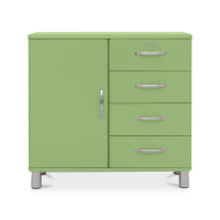 The Rebel. Meet MALIBU. Geïnspireerd door de jaren '50 en '60 waarin jongeren via muziek, mode en kunst naar manieren zochten om zich af te zetten tegen gevestigde waarden, viert Malibu de Rock 'n Roll spirit waarin vrijheid en persoonlijkheid centraal staan. Malibu is jong, rebels en heerlijk kleurrijk! Met zijn stijlvolle, retro design dat het midden houdt tussen modern en retro, en zijn 9 happy colors, is Malibu een ode aan de vrije geest van de Amerikaanse surfcultuur midden vorige eeuw. Deze commode heeft 1 deur met legplanken en 4 lades, en heeft een breedte van 98cm, een diepte van 41cm en een hoogte van 92cm.