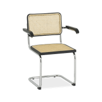 Armstoel GUSTAVO in Beech Wood Black is een stijlvolle knipoog naar iconisch design met een moderne twist. De combinatie van een zwart beukenhouten frame, gevlochten rotan zitting en rugleuning, en een elegant verchroomd buisframe straalt tijdloze klasse uit. Dankzij de comfortabele armleuningen en de verende sledestructuur zit GUSTAVO bijzonder aangenaam. Perfect als eetkamerstoel of eyecatcher in een werkkamer – GUSTAVO brengt karakter en verfijning in elk interieur!