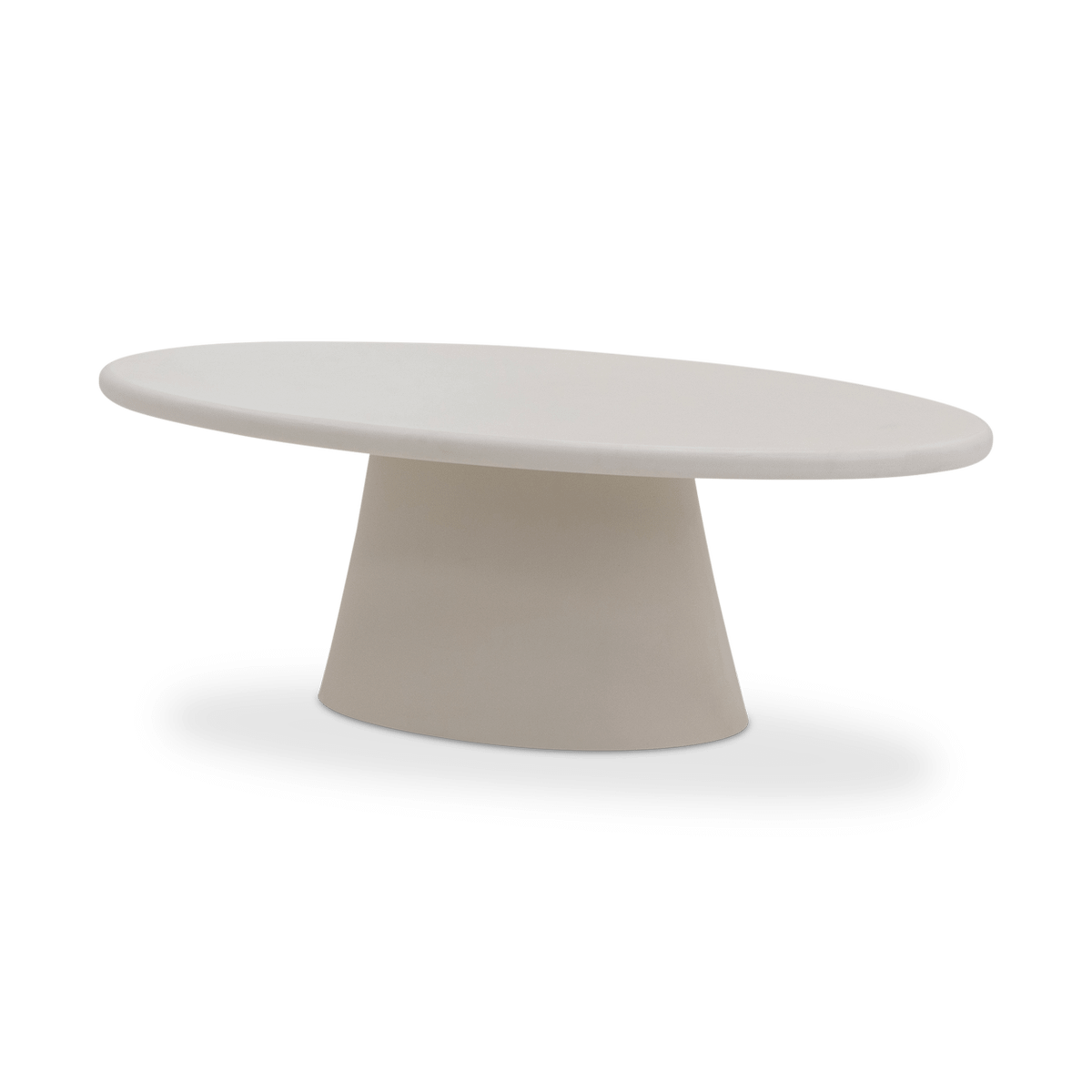 Met de KYTHIRA salontafel breng je een verfijnde blikvanger in huis die zowel functioneel als stijlvol is. Deze ovale salontafel maakt jouw zitkamer helemaal af. Het blad, gemaakt van microcement, heeft een subtiel matte afwerking die bijdraagt aan de moderne uitstraling. De centrale, taps toelopende poot zorgt niet alleen voor een stabiele basis maar geeft de salontafel ook een speels en sculpturaal karakter.