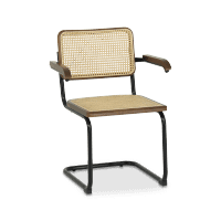 Armstoel GUSTAVO in Beech Wood Canaletto is een stijlvolle knipoog naar iconisch design met een moderne twist. De combinatie van een donkerbruin beukenhouten frame, gevlochten rotan zitting en rugleuning, en een elegant mat zwart buisframe straalt tijdloze klasse uit. Dankzij de comfortabele armleuningen en de verende sledestructuur zit GUSTAVO bijzonder aangenaam. Perfect als eetkamerstoel of eyecatcher in een werkkamer – GUSTAVO brengt karakter en verfijning in elk interieur!