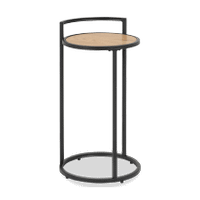 Laptop- en bijzettafel BOKSKAP uit de BOKSKAP-collectie met Wild oak blad, zwarte metalen poten en handvat is super handig om in huis te hebben. Je kan hem zelf gebruiken naast je sofa, om je drankjes op te plaatsen, of als extra bijzettafeltje als je gasten hebt uitgenodigd. En in een handomdraai staat ie weer op z'n plaats!