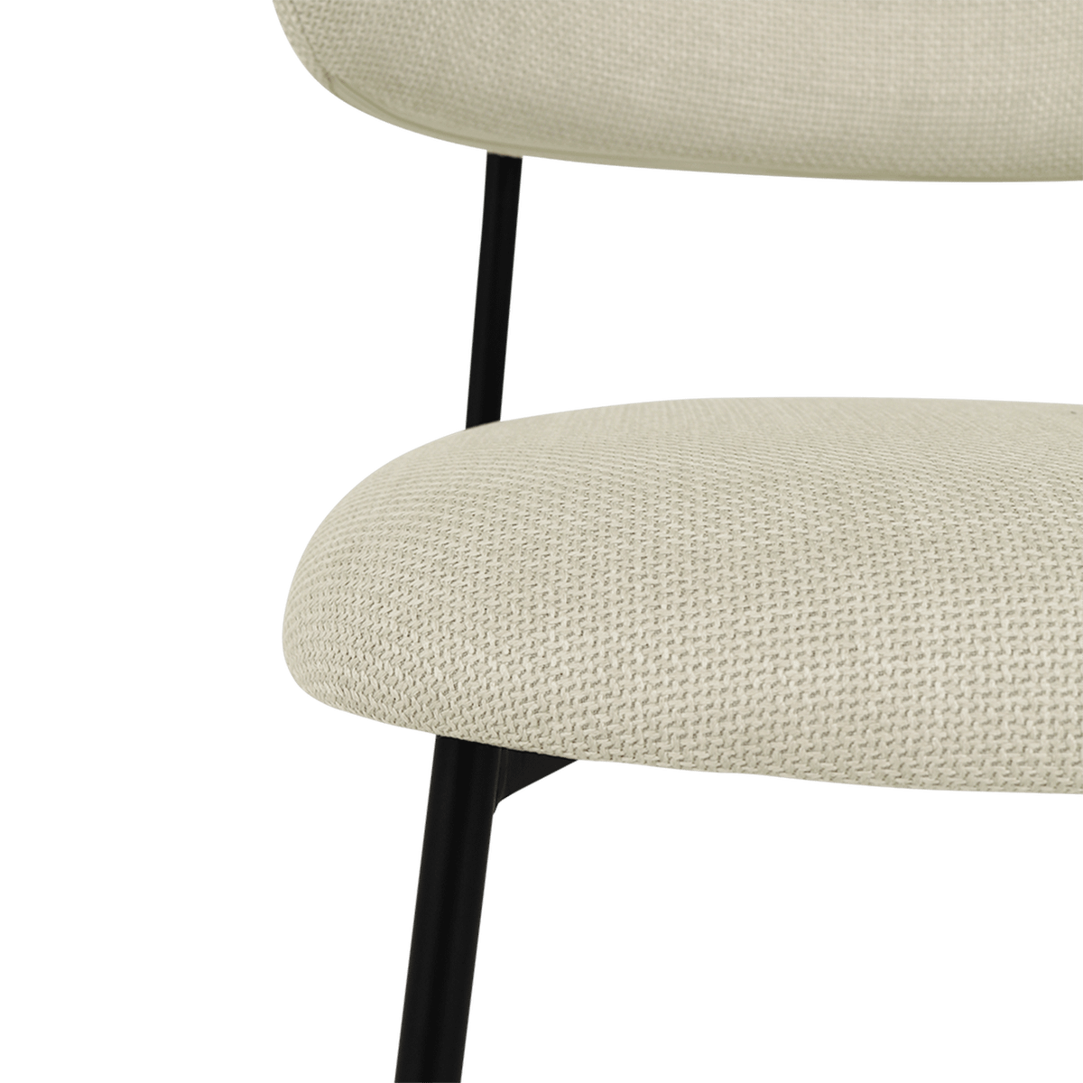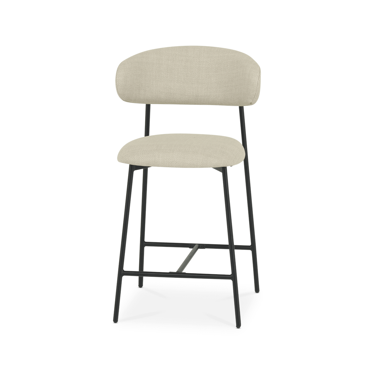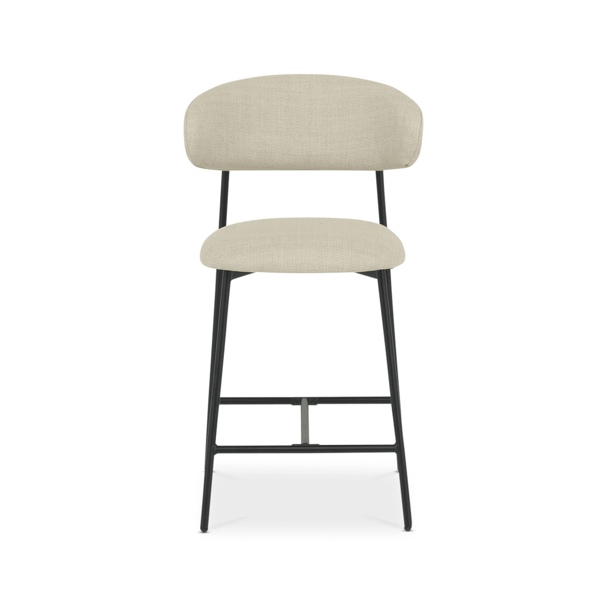 De FJERRE Barstoel, gehuld in een prachtige zandkleur en vervaardigd uit geweven materiaal, straalt een tijdloze elegantie uit die moeiteloos past in elke ruimte. De zwarte poten voegen een vleugje eigentijdse flair toe aan zijn design.