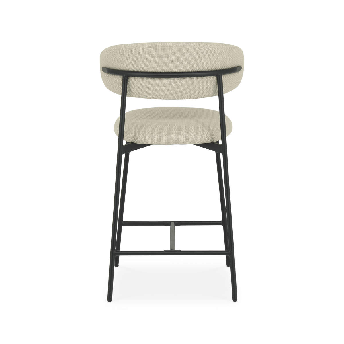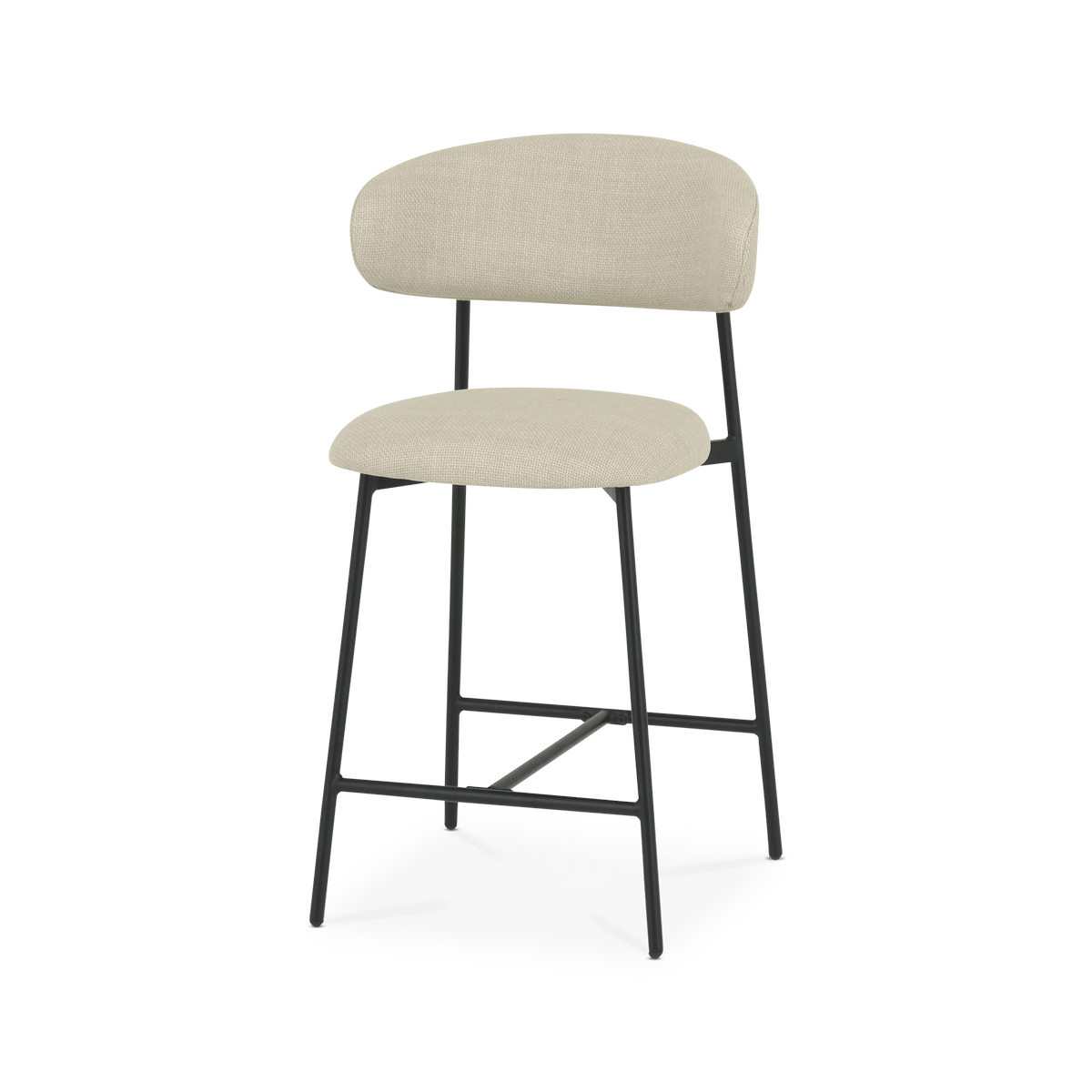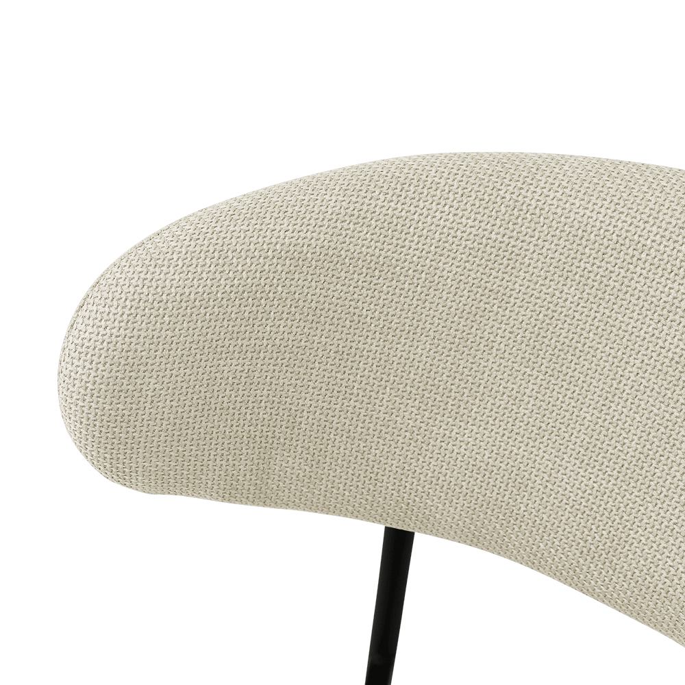 De FJERRE Barstoel, gehuld in een prachtige zandkleur en vervaardigd uit geweven materiaal, straalt een tijdloze elegantie uit die moeiteloos past in elke ruimte. De zwarte poten voegen een vleugje eigentijdse flair toe aan zijn design.