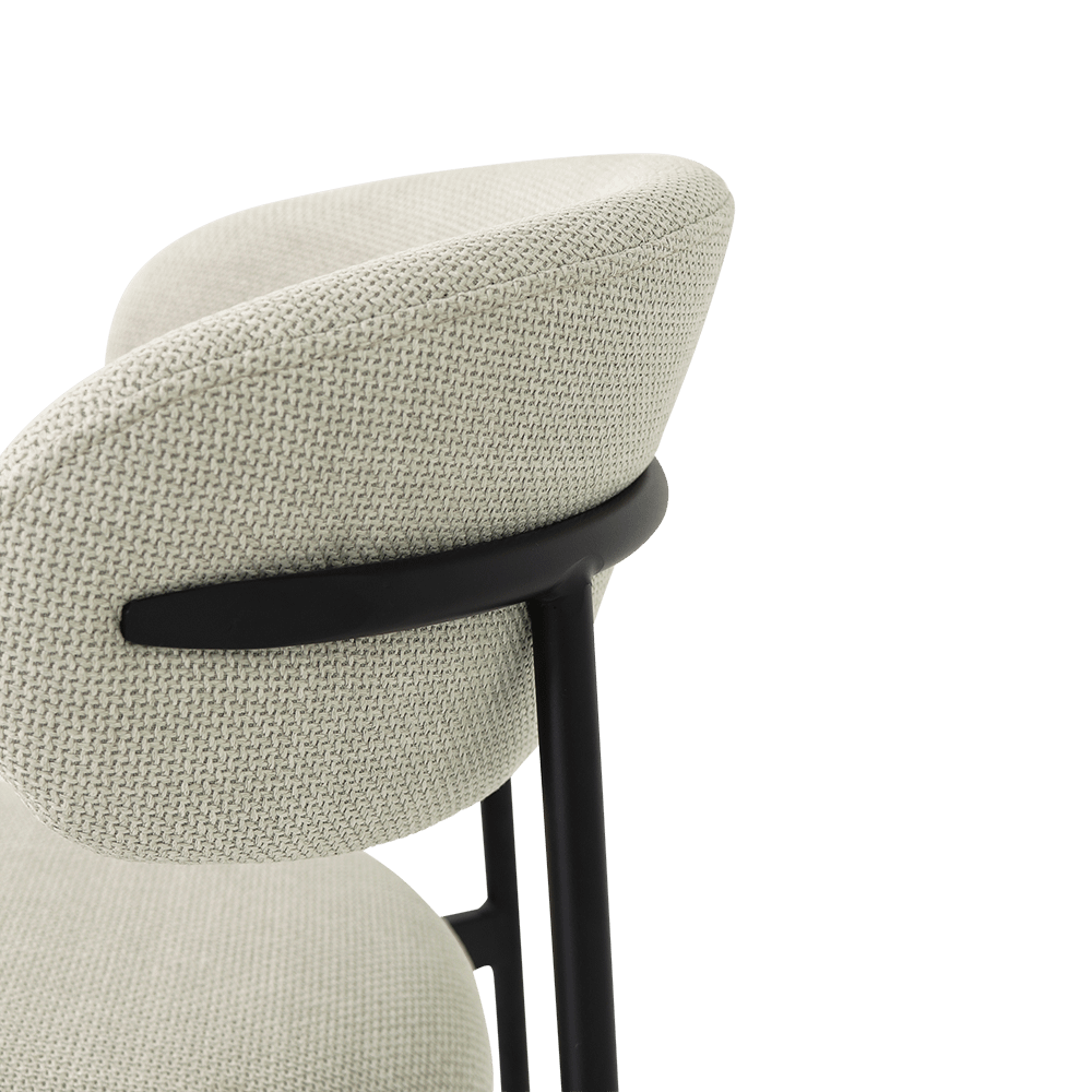 Deze Barstoel is zowel stevig als gezellig, dankzij het metalen frame dat solide ondersteuning biedt en de prachtig gebogen zitting die een eigentijdse look toevoegt aan elke moderne ruimte.