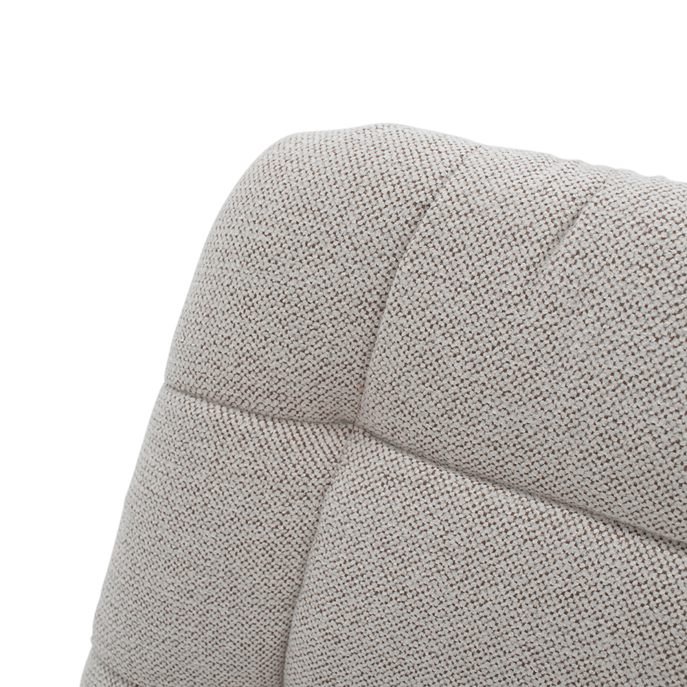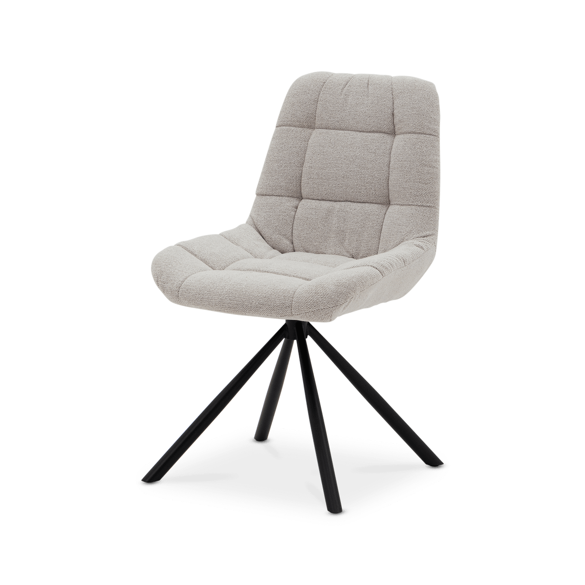 De OLIA stoel in Beige is een moderne blikvanger met een zachte, comfortabele zit en een eigentijdse uitstraling. De luxueuze bekleding met subtiel doorgestikte vlakken zorgt voor een uitnodigend en warm karakter, terwijl de zwarte metalen spinpoot het geheel een strak accent geeft.