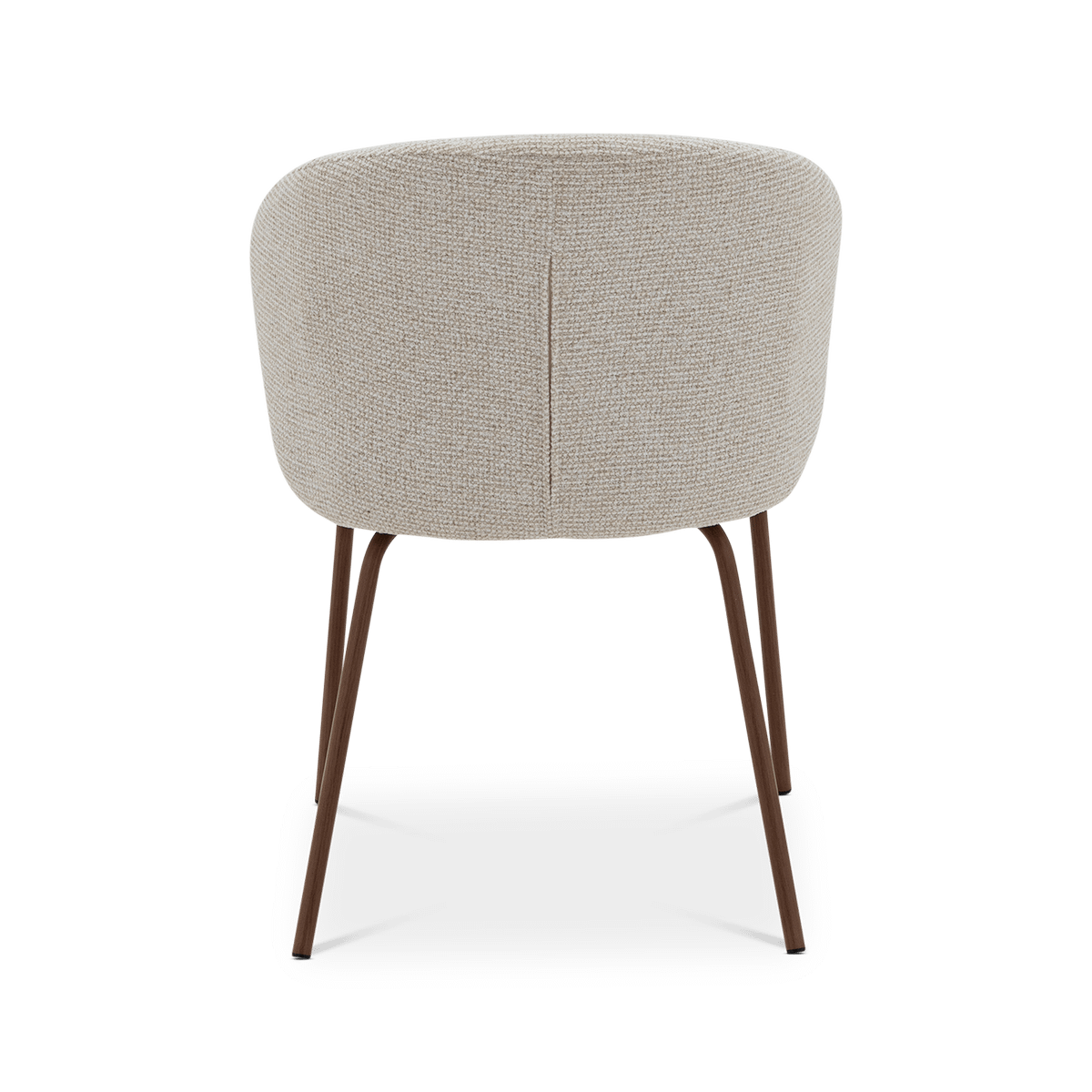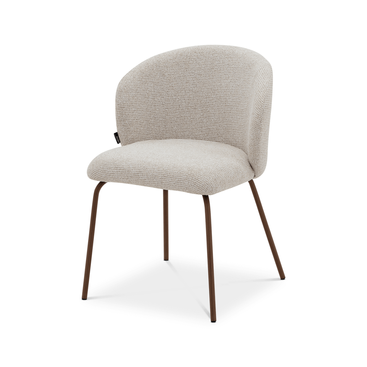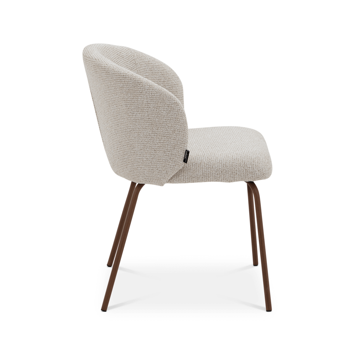 De metalen poten in Walnut foil geven het ontwerp een verfijnde toets en vormen een mooi contrast met de lichte stof. Deze mix van materialen maakt de YENER tot een echte blikvanger aan de eettafel.