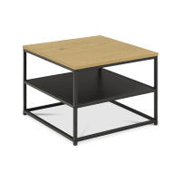 Een moderne, chique en praktische salontafel? Dat is Arizo. Dankzij het melamine tafelblad heeft de salontafel een onderhoudsvriendelijk oppervlak wat makkelijk schoon te vegen is. De combinatie van wild oak melamine en het gepoedercoate metalen onderstel geeft het tafeltje een krachtige uitstraling. Het vierkante metalen onderstel zorgt ook voor stevigheid. Gebruik de plank als opbergplek voor kleine spullen zoals tijdschriften, afstandsbedieningen en andere spulletjes.