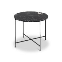 Klein, maar fijn. Bijzettafels mogen dan wel klein zijn, maar ze zijn nog steeds een belangrijk onderdeel van ons interieur. Het geeft extra ruimte om iets op te zetten, staat leuk,... Ook deze Freja bijzettafel zal je niet snel over het hoofd zien. Gemaakt in zwarte kunstmarmeren steen is deze chique bijzettafel de ideale partner van jouw zetel en ruimte. Het ronde blad staat op een slank ruw gepoedercoat metalen onderstel met gekruiste details.