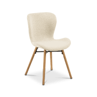 Stoel PLATS is het helemaal. Dankzij zijn tijdloze, fijne look en de mooie trendy bouclé stoffen afwerking in het beige en zijn eiken poten, is deze stoel echt geweldig om in huis te hebben.