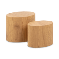 Deze set RIKA van 2 salontafels valt meteen op met zijn interessant design en moderne vormen. Met zijn mooie houtlook van kop tot teen, is deze salontafel ook helemaal mee met de huidige trends. De ovalen vormen zorgen meteen voor een gesofisticeerde vibe.