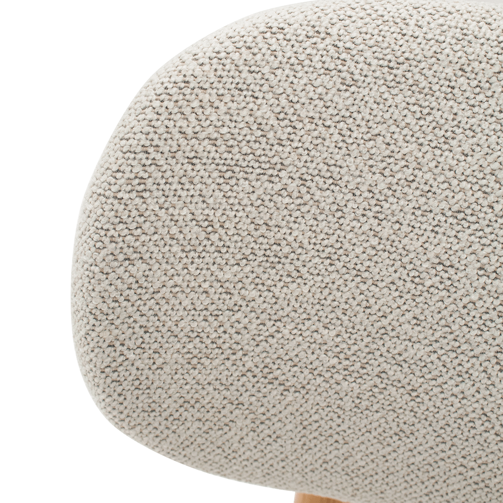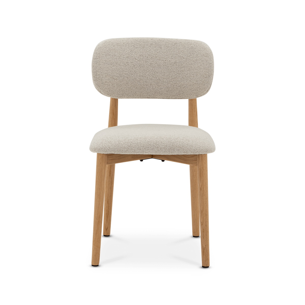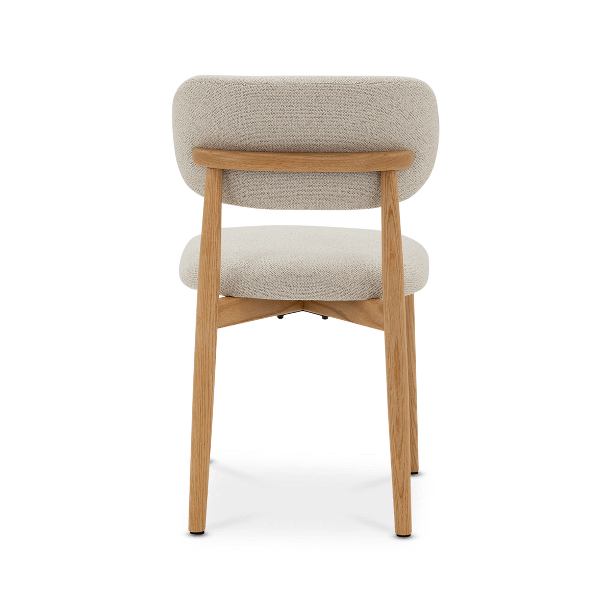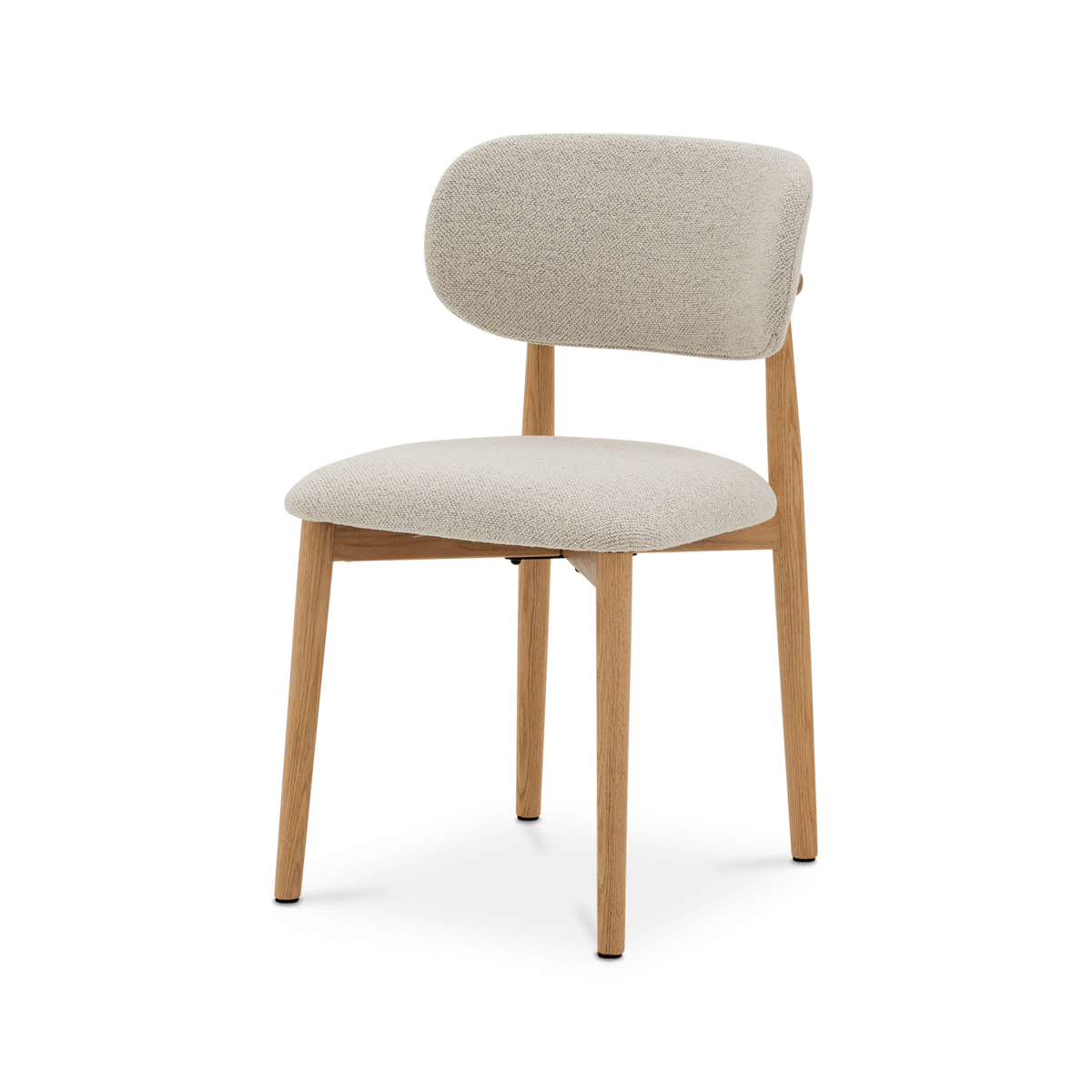 De JUNNI stoel in Monza Cream met eikenhouten poten straalt een subtiele elegantie uit die perfect past in moderne en natuurlijke interieurs.
