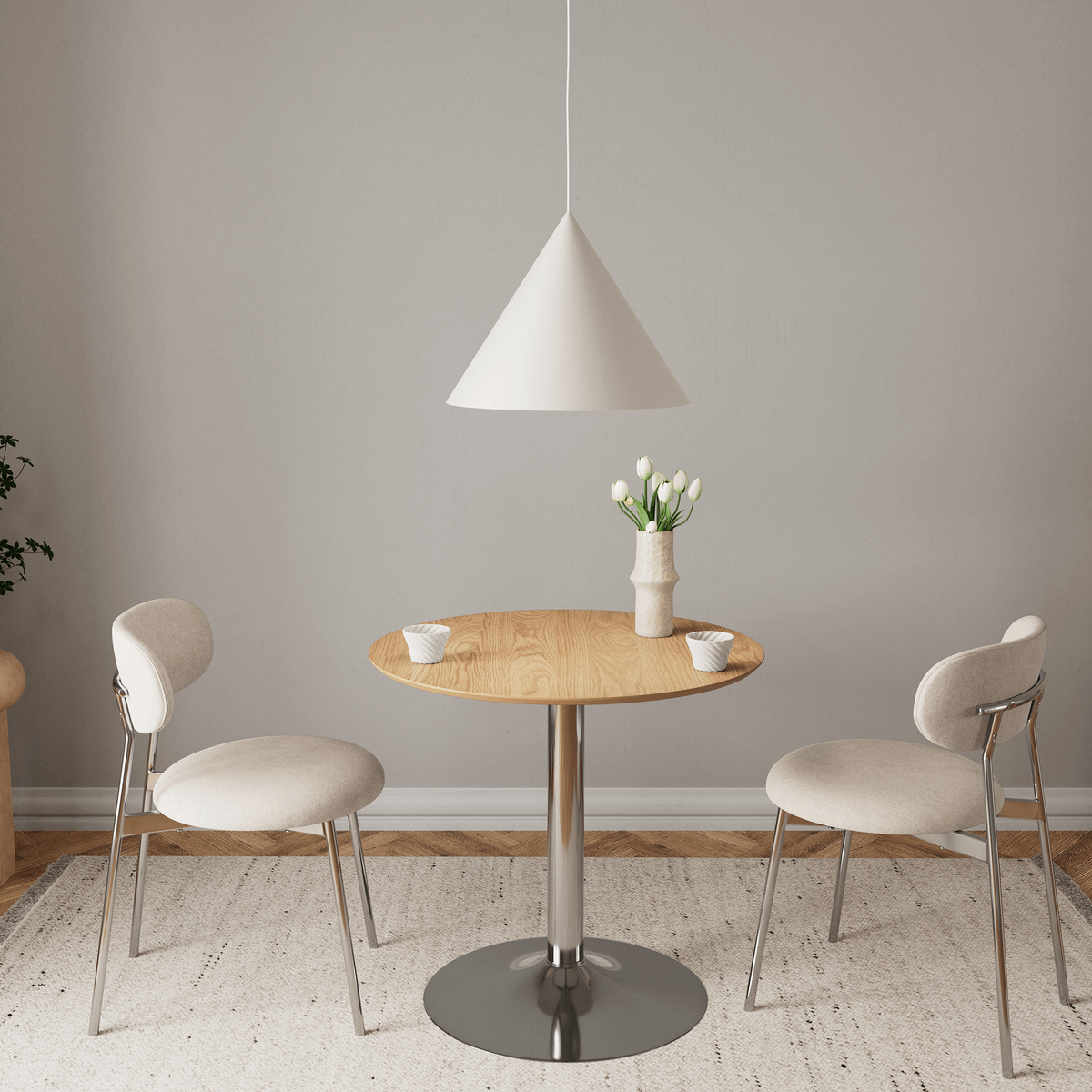 Eettafel LUTOR Eikfineer/Chrome Ø80 is toegevoegd aan je winkelmandje