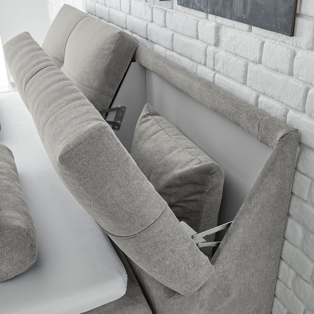 Wat IBADAN echt bijzonder maakt, is de praktische opbergruimte onder het ligvlak. Dankzij het handige liftsysteem creëer je in één beweging extra plaats voor bedlinnen, dekens of andere spullen – perfect voor wie ruimte wil optimaliseren zonder in te boeten op stijl.