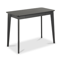 Het compacte bureau MARIS past perfect in elke werkruimte. Dit bureau heeft een elegant zwart blad van eiken fineer. Het zwarte rubberhouten frame biedt een stabiele basis.