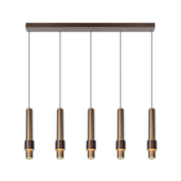 Waarom jezelf beperkt tot 4 lichtpunten als je er ook 5 kan kiezen? Deze hanglamp genaamd Margary brengt een luxueuze eyecatcher binnen in je interieur. Ze past perfect boven de eettafel van een hedendaags interieur, maar het uitgekiende materialenpallet en de kleurkeuzes blenden evengoed in een eerder landelijke stijl. De aluminium bevestigingsplaat vormt de basis voor de 5 slanke pendels. Aan elk van hen hangt een licht conische aluminium cilinder met daarin de lichtpunten verwerkt. In het meervoud, inderdaad. Want naast een downlighter helemaal onderin de cilinder plooit een tweede geïntegreerde ledlamp zich rond de elegante koker. Op zijn beurt omringd door een tweede cilinder. Het uitgekiende design van deze vormen en hun verhouding creëren een mysterieuze gloed. Het resultaat is een instant eyecatcher met sterallures.
