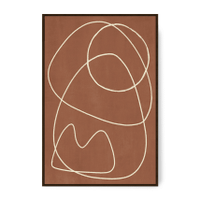 Voeg een speels en modern accent toe aan je interieur met wanddecoratie GITA. Dit handgeschilderde olieverfschilderij op canvas, met een afmeting van 80x120 cm, is omlijst door een stijlvolle bruine kader. Het abstracte ontwerp met sierlijke witte lijnen op een warme terracottakleurige achtergrond creëert een dynamisch en visueel aantrekkelijk geheel.