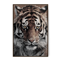 Breng een krachtig en indrukwekkend accent in je interieur met wanddecoratie RAMA. Dit handgeschilderde olieverfschilderij op canvas, met een afmeting van 80x120 cm en een naturelkleurige kader, toont het majestueuze portret van een tijger in verbluffende details.