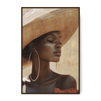 Maak kennis met de elegante wanddecoratie CAHAYA. Gemaakt van hoogwaardig geprint materiaal op canvas en met een afmeting van 80x120 cm, straalt dit kunstwerk verfijning en schoonheid uit. Het prachtige portret van een stijlvolle vrouw met een grote hoed en opvallende oorbellen voegt een vleugje exotische charme toe aan uw interieur.