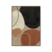 Ontdek de moderne elegantie van wanddecoratie FITRIH. Dit prachtige canvas van 50x70 cm, handgeschilderd met olieverf en omlijst door een stijlvolle bruine kader, brengt een abstract ontwerp in rijke aardetinten in uw interieur. De vloeiende lijnen en organische vormen creëren een dynamisch en harmonieus geheel dat perfect past in zowel moderne als klassieke woonruimtes.