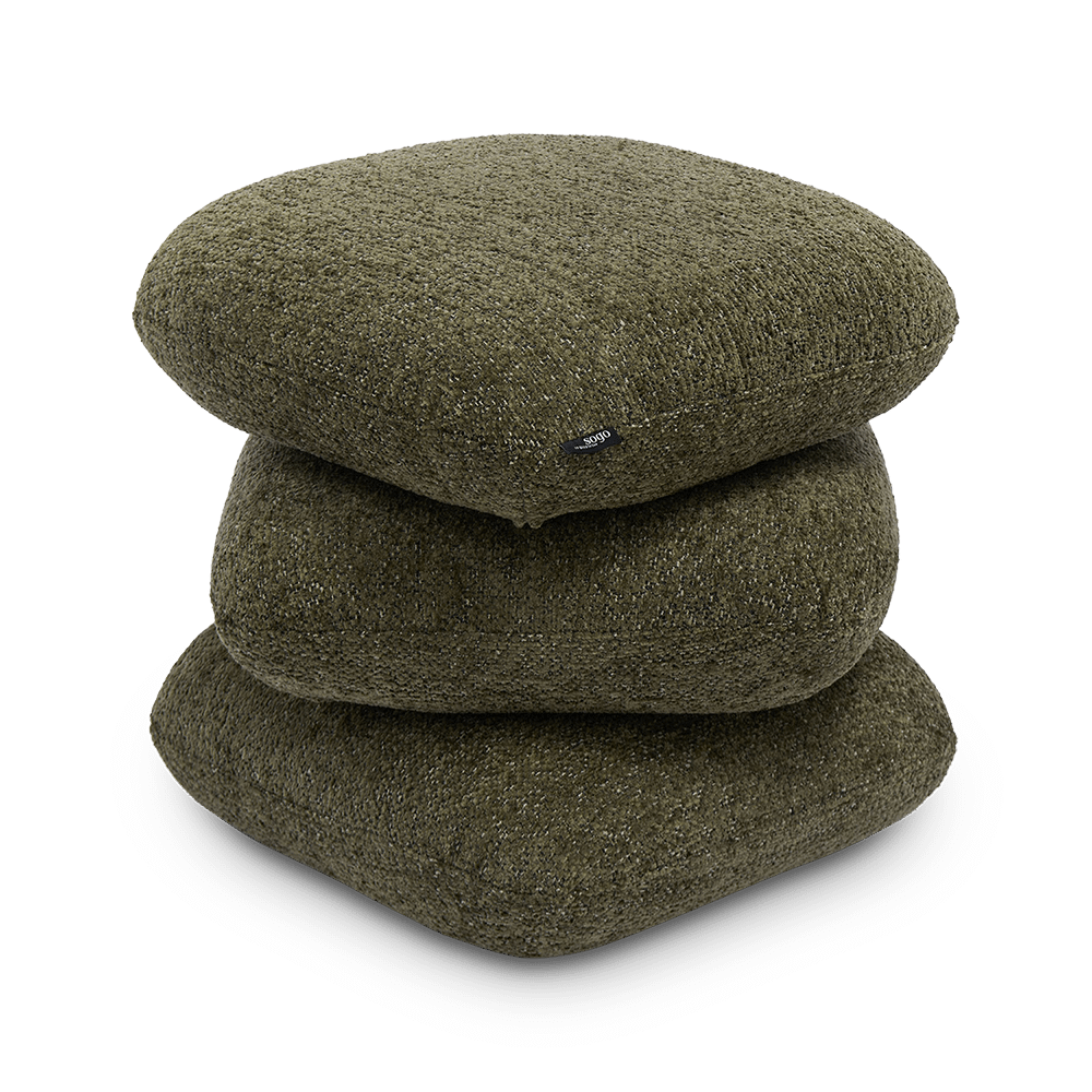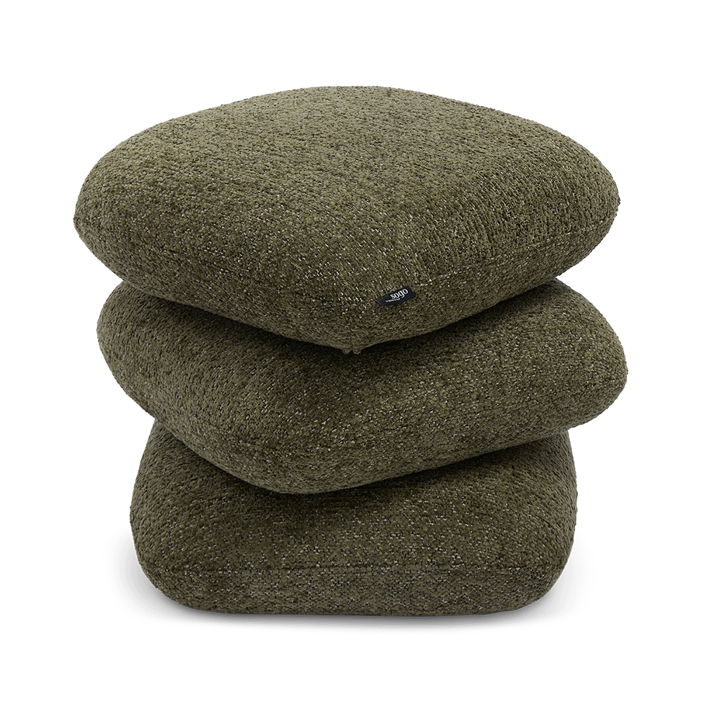 De MOONIE Poef is een echte blikvanger met zijn speelse, gelaagde design dat doet denken aan drie gestapelde kussens. Ondanks zijn uitstraling vormt hij één stevig geheel. De drie delen zijn draaibaar, waardoor je de poef in verschillende vormen kunt positioneren — ideaal om zowel praktisch als decoratief te gebruiken.