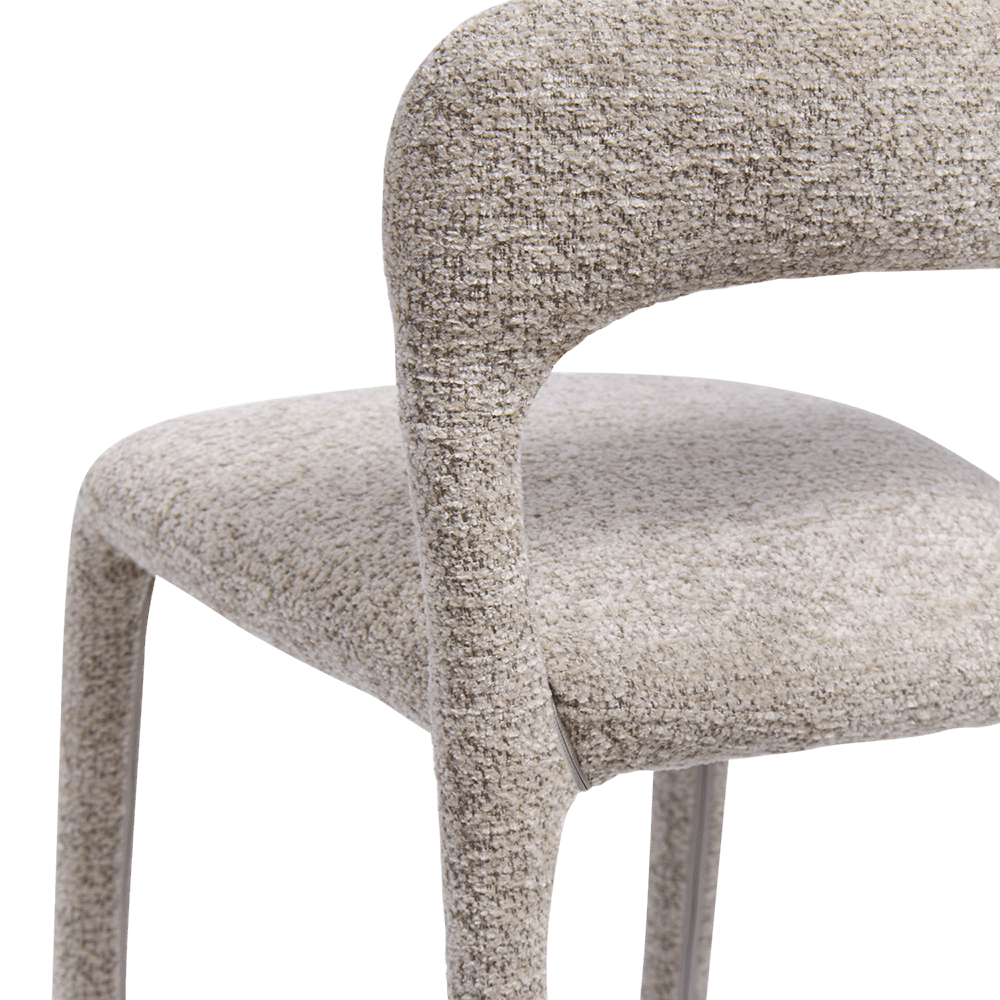 Dankzij de volledig gestoffeerde poten en afgeronde vormen oogt de stoel als één harmonieus geheel. Comfortabel om op te zitten, stijlvol om naar te kijken – de perfecte mix van design en gebruiksgemak.
