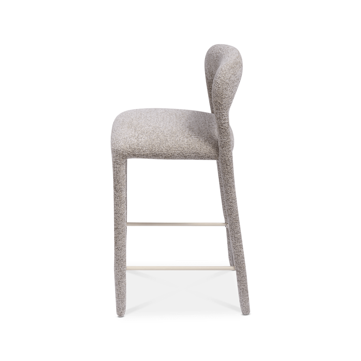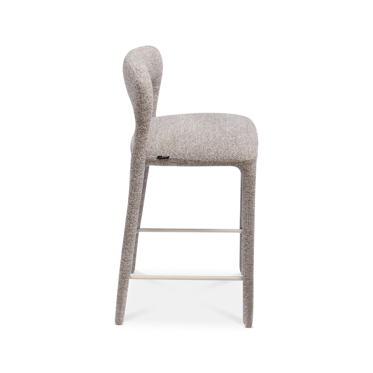 De LAURA Barstoel brengt met zijn hoge en elegante vorm een verfijnde uitstraling in zacht bouclé. Met de Mushroom Taupe kleur geeft de barstoel een warme, moderne look die in elke keuken of barhoek tot zijn recht komt.
