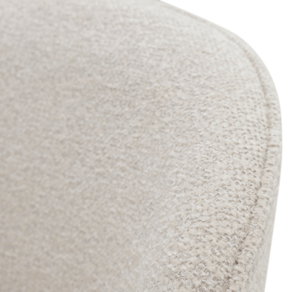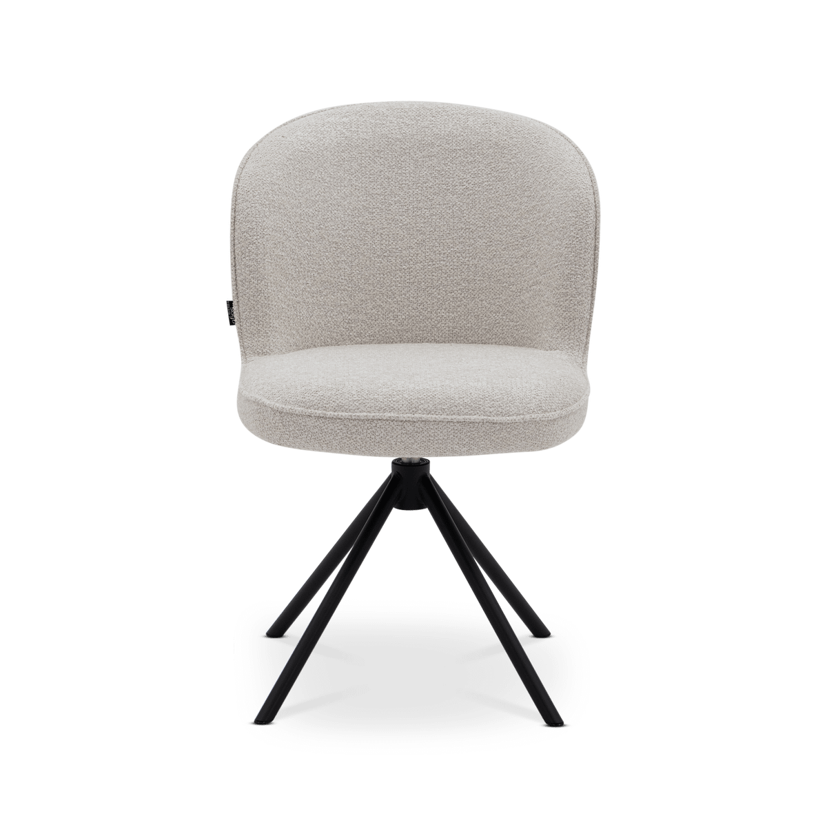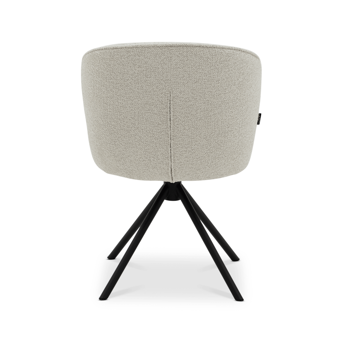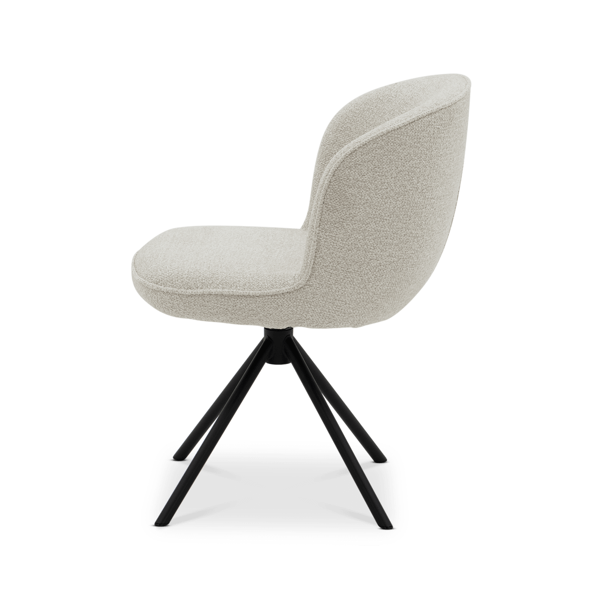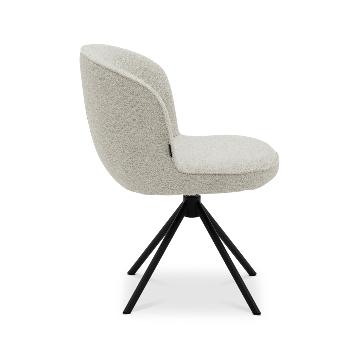 De zachte stof in Ivory Cloud geeft een lichte, rustige uitstraling. Dankzij de 360° draaifunctie zit je extra flexibel aan tafel.