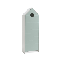 Bergkast SAAR is een speelse en stijlvolle opbergoplossing met een uniek huisjesdesign. Dankzij de subtiele neutrale tinten en de strakke vormgeving past deze kast perfect in elke kinderkamer of speelhoek. Achter de deur met het decoratieve ronde venster vind je vier ruime legplanken, ideaal voor het opbergen van speelgoed, boeken of kleding. De combinatie van functionaliteit en design maakt SAAR een echte blikvanger in elk interieur. Een charmante en praktische toevoeging aan je interieur!