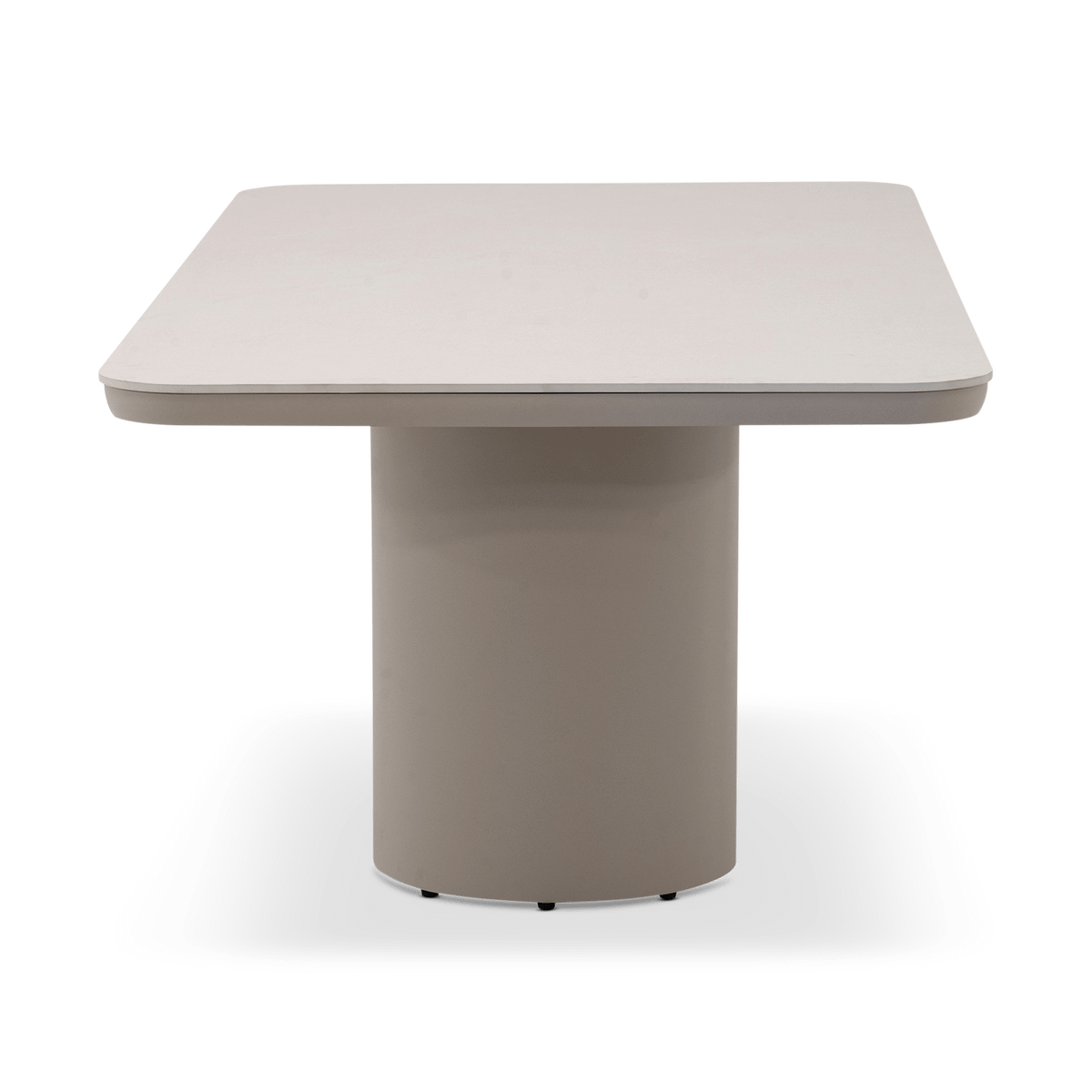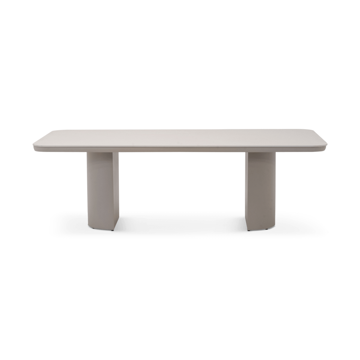 De ATLAS Tuintafel straalt pure rust en elegantie uit. Het royale tafelblad in Stone Pearl krijgt een zachte, natuurlijke uitstraling die perfect harmonieert met de robuuste poten in Sandstone.