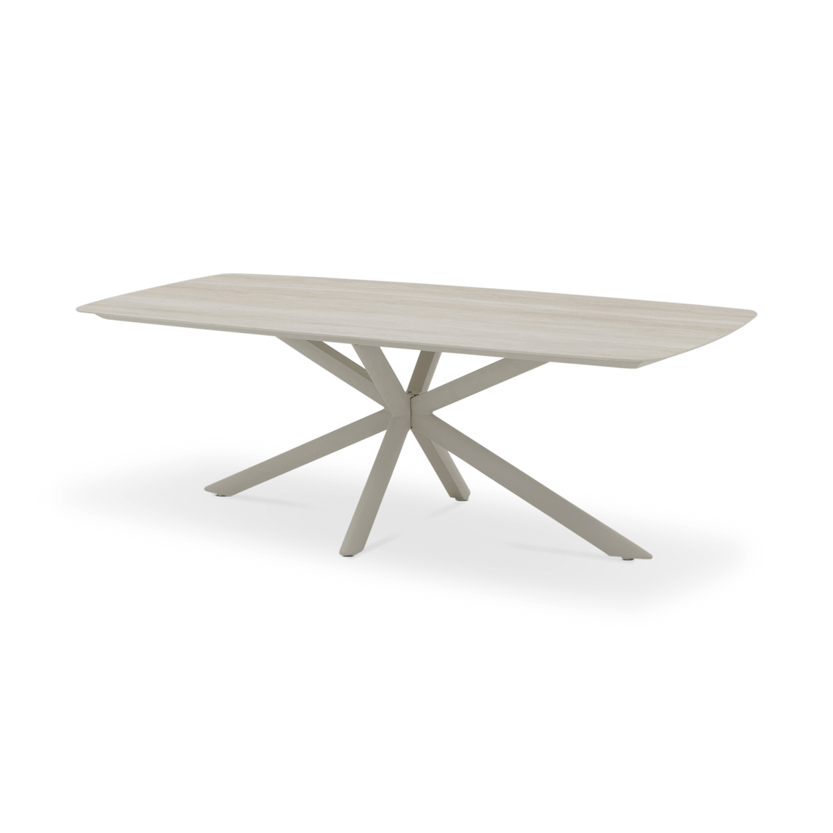 Het tafelblad in stone travertinlook geeft de tafel een natuurlijke en elegante uitstraling, terwijl het pebble kleurige onderstel met zijn opvallende stervormige poten zorgt voor een moderne en luchtige basis. Met zijn royale afmeting van 220x100 cm biedt deze tafel ruim plaats om gezellig te tafelen met familie en vrienden. Dankzij de duurzame materialen en het tijdloze ontwerp vormt tuintafel Capri een stijlvolle blikvanger op elk terras.