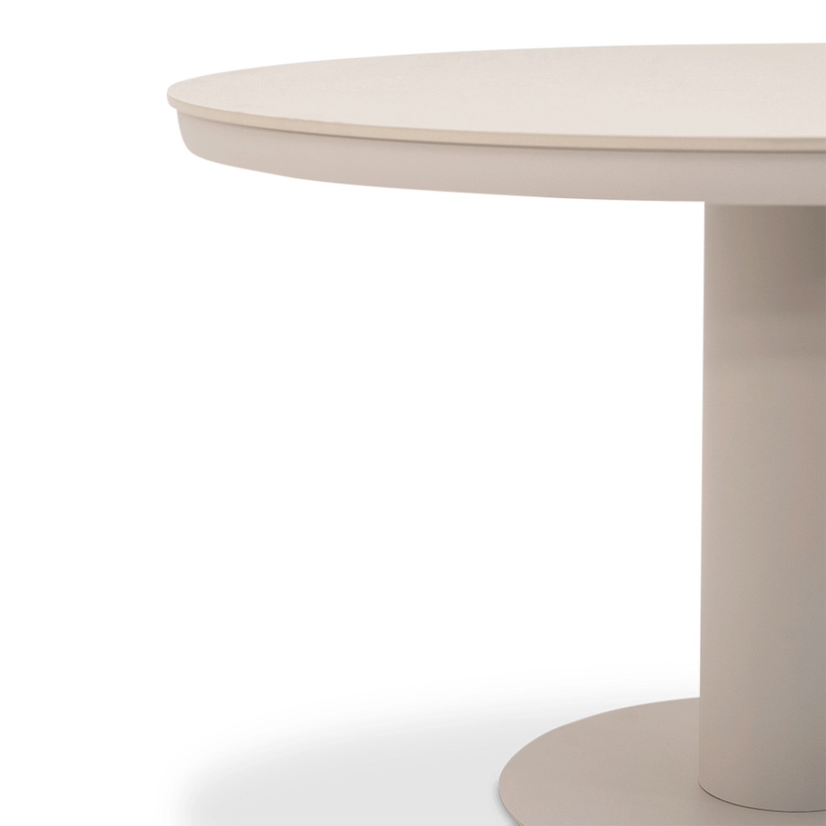 De MORO Tuintafel combineert een verfijnd rond tafelblad in Stone Pearl met een elegante centrale poot in Dune. Het minimalistische ontwerp en de zachte, natuurlijke tinten zorgen voor een harmonieuze en tijdloze uitstraling.