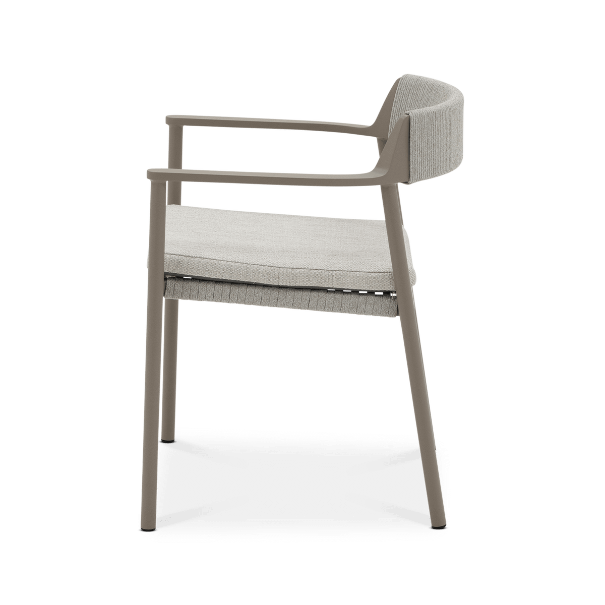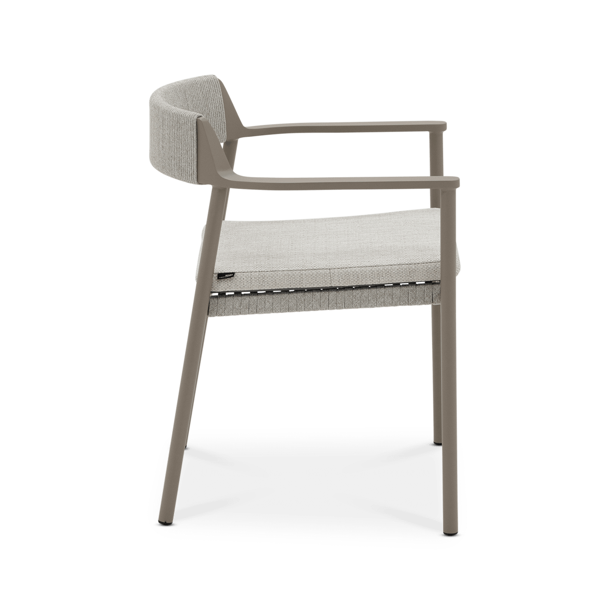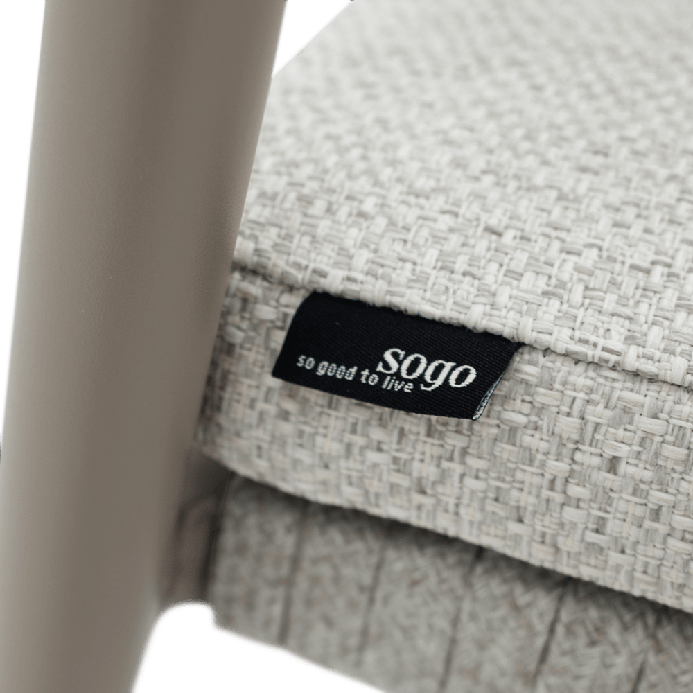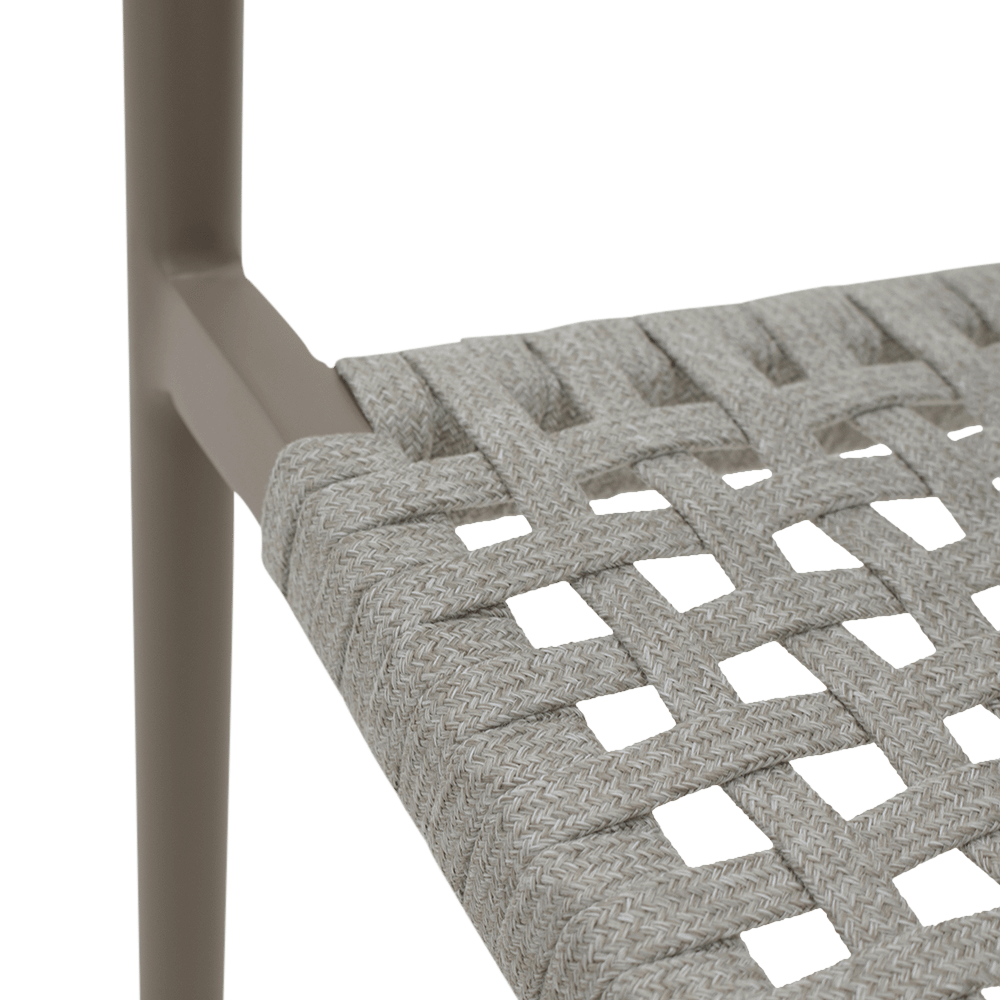 Het mocha taupe kleurige frame vormt een warme en moderne basis, terwijl de linen bekleding zorgt voor een zachte en natuurlijke uitstraling. De subtiele weving in de rug en de comfortabele zitkussen geven de stoel een luchtig en uitnodigend karakter. Dankzij de geïntegreerde armleuningen en de duurzame materialen is armstoel Serena ideaal om ontspannen te genieten van lange, gezellige buitenmomenten.