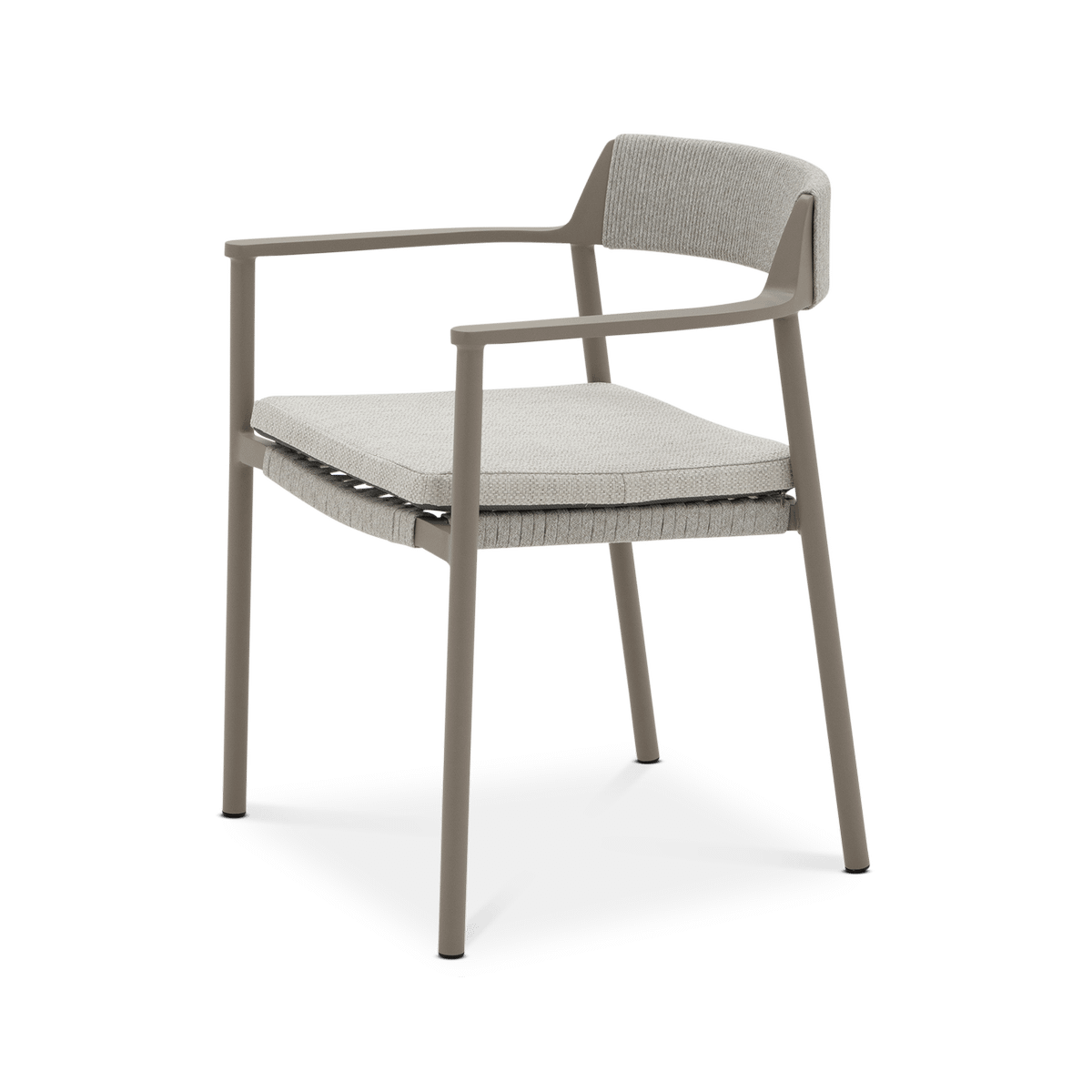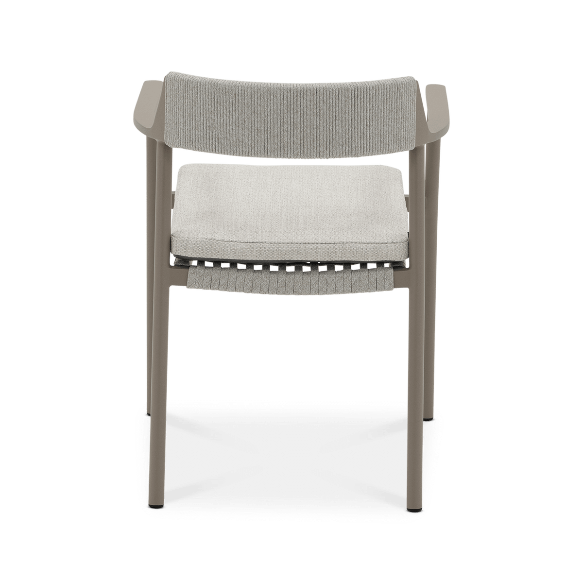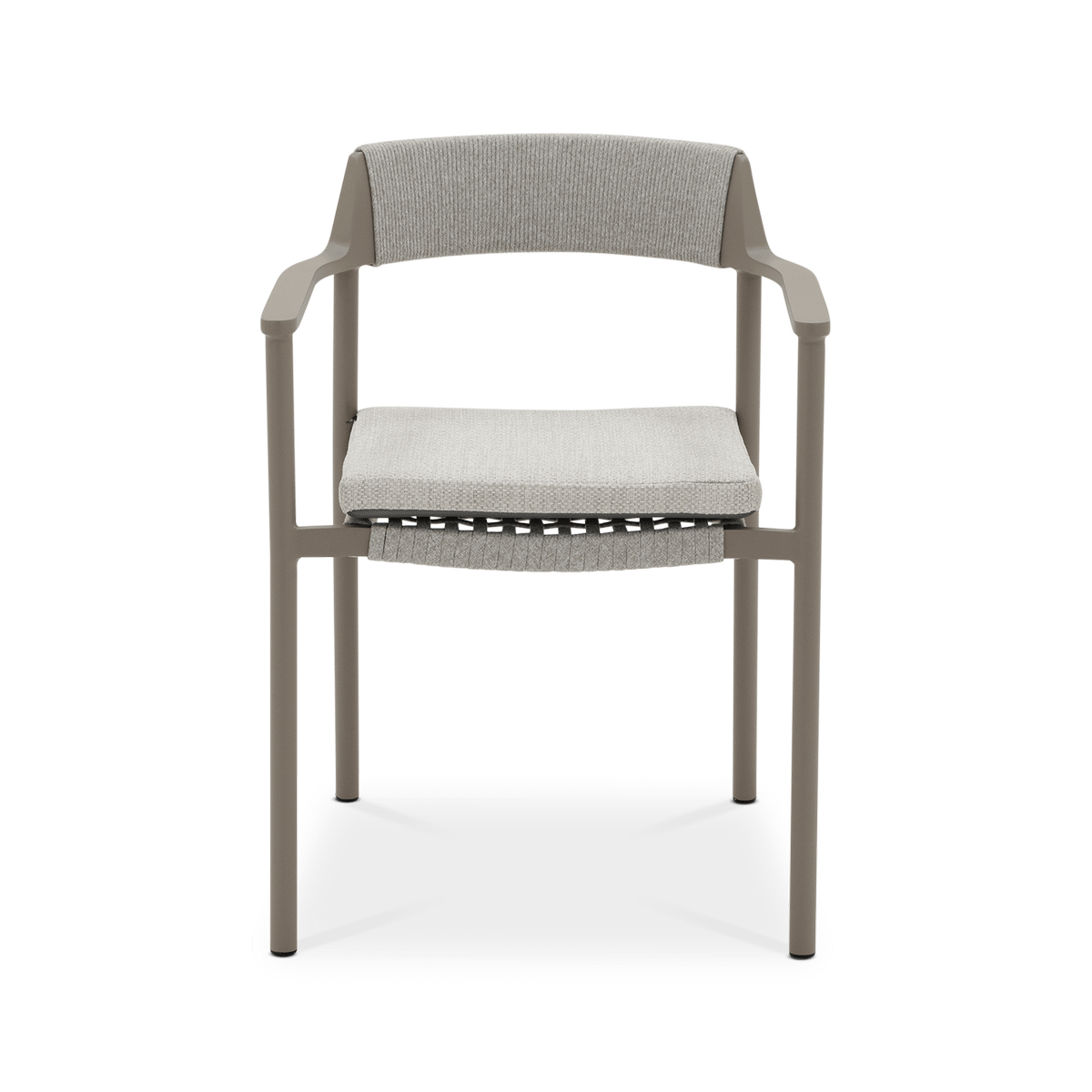Het mocha taupe kleurige frame vormt een warme en moderne basis, terwijl de linen bekleding zorgt voor een zachte en natuurlijke uitstraling. De subtiele weving in de rug en de comfortabele zitkussen geven de stoel een luchtig en uitnodigend karakter. Dankzij de geïntegreerde armleuningen en de duurzame materialen is armstoel Serena ideaal om ontspannen te genieten van lange, gezellige buitenmomenten.