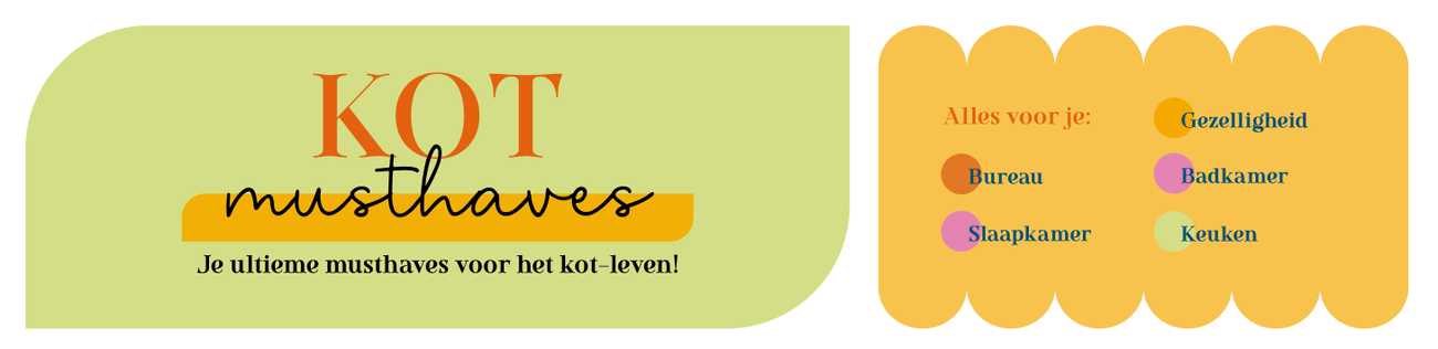 Of je nu voor het eerst op kot gaat of een doorgewinterde student bent, het inrichten van je studentenkot is een spannende en leuke stap. Een goed ingericht kot draagt niet alleen bij tot je comfort en productiviteit, maar het helpt ook om je er volledig thuis te voelen. Hier zijn enkele tips en onmisbare elementen om in gedachten te houden bij het inrichten van je studentenkot. Wil je zeker zijn dat je niets vergeet? Download dan hier onze handige kot checklist! ✔