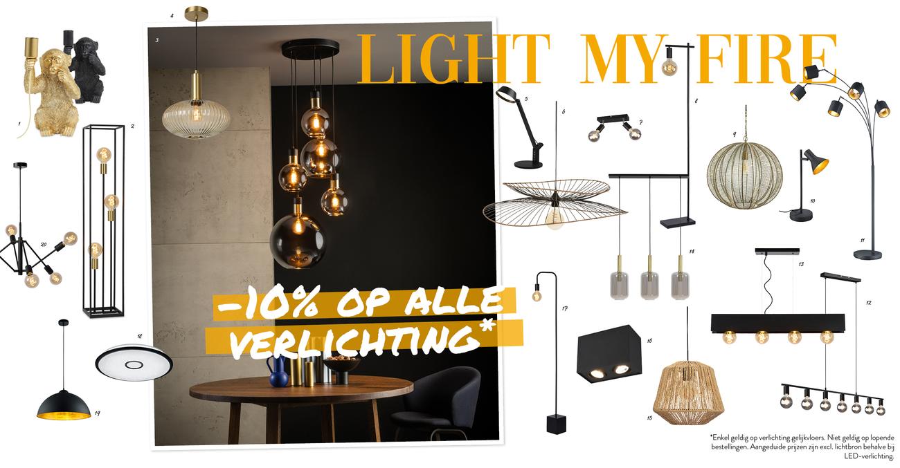 1. Tafellamp mat zwart/mat goud h23cm €14,95 €13,46 | 2. Vloerlamp Zwart/goud b22xh120xd22 €114,80 €103,32 | 3. Hanglamp 5-delig b65xh160xd65 €433,10 €389,79 | 4. Hanglamp Amber/messing Ø20xh150 €57,10 €51,39 | Ø30xh150 €57,10 €51,39 | 5. Bureaulamp b27xh40xd17 €51,90 €46,71 | 6. Hanglamp metaal zwart b69,5xh17,5xd69,5 €56,60 €50,94 | 7. Spot 2-delig b30xh13xd9 €20,40 €18,36 | 8. Vloerlamp Metaal zwart b15xh152xd26 €54,30 €48,87 | 9. Hanglamp Metaal brons L Ø35xh33 €74,60 €67,14 | XL Ø53xh48 €132,30 €119,07 | 10. Tafellamp Metaal zwart/goud b13xh39xd22 €33,40 €30,06 | 11. Vloerlamp 5-delig Metaal zwart h200cm €170,90 €153,81 | 12. Hanglamp 7-delig Metaal zwart b110xh150xd8,5 €77,80 €70,02 | 13. Hanglamp 4-delig Metaal zwart b90xh130xd7 €134,70 €121,23 | 14. Hanglamp 3-delig Smoked glass/antiek brons b100xh32xd22 €249,00 €224,10 | 15. Hanglamp Naturel b29xh26xd29 €29,10 €26,19 | 16. Spots Mat zwart 2-delig b17,8xh12,5xd9,6 €43,10 €38,79 | 17. Vloerlamp Zwart b14xh160xd28 €83,60 €75,24 | 18. Plafonnier Mat zwart Ø21 €29,90 €26,91 | Ø42 €89,40 €80,46 | Ø65 €182,70 €164,43 | 19. Hanglamp Metaal zwart/goud b50xh150xd50 €137,80 €124,02 | 20. Hanglamp Zwart 6-delig flexibel b50xh150xd50 €59,70 €53,73